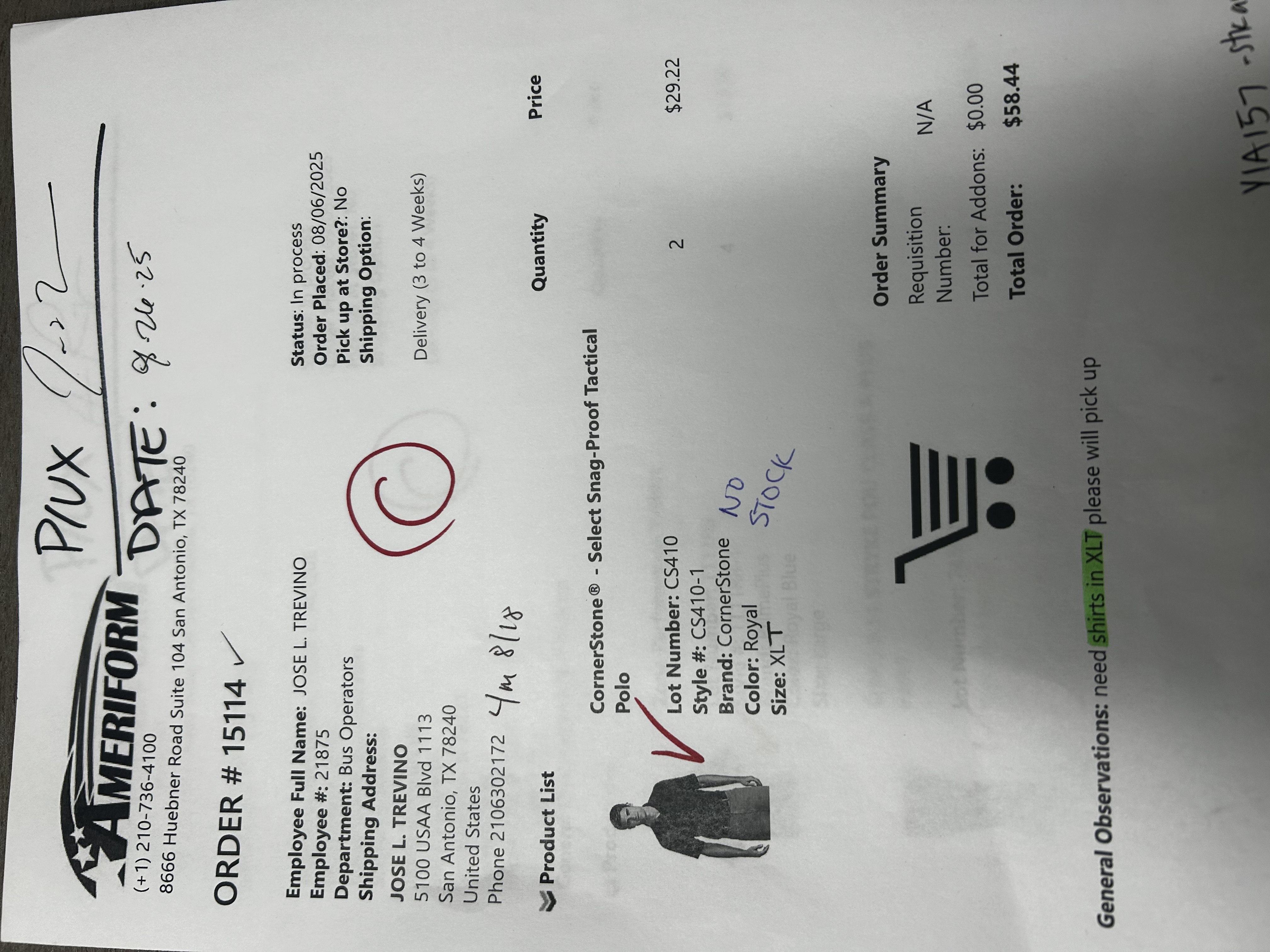 need shirts in XLT please will pick up