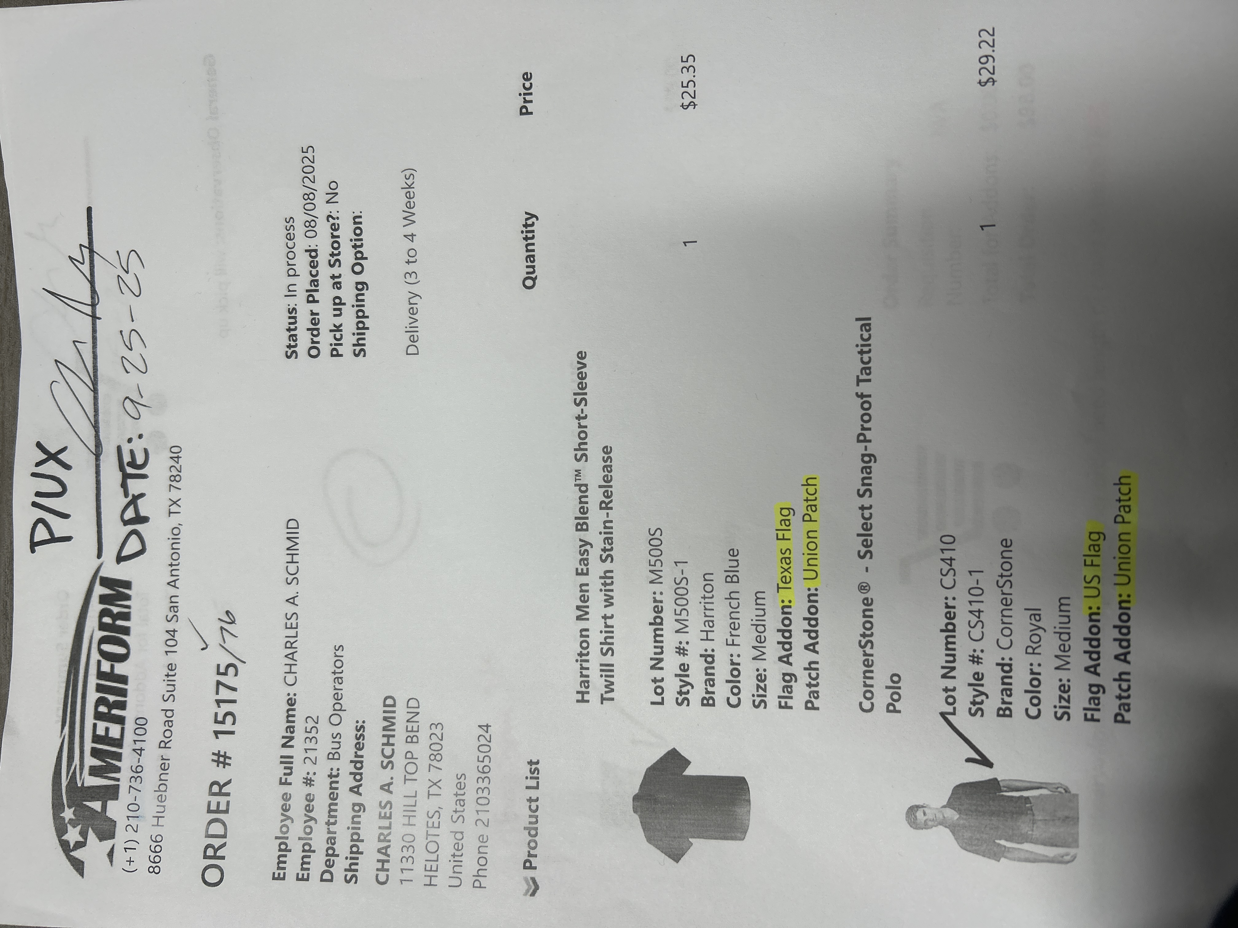 Order # 15175