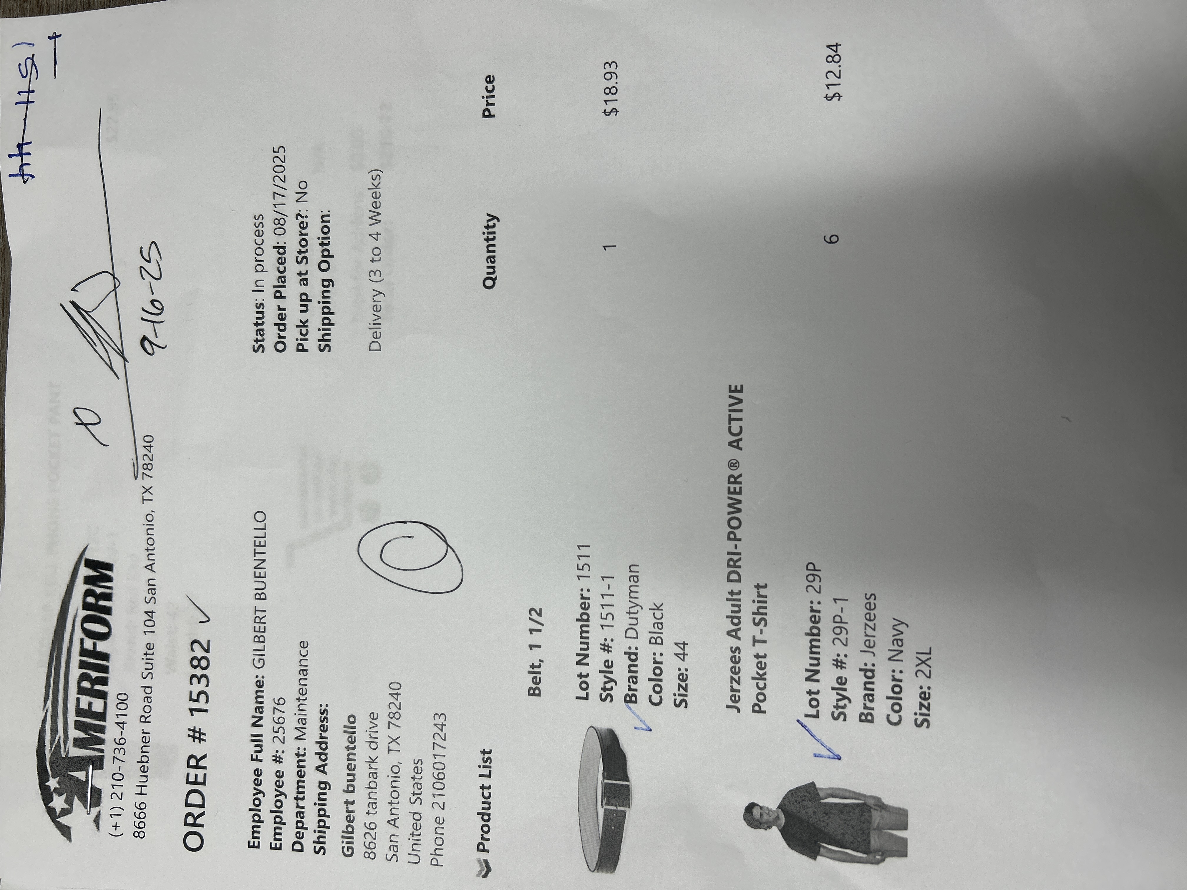 Order # 15382