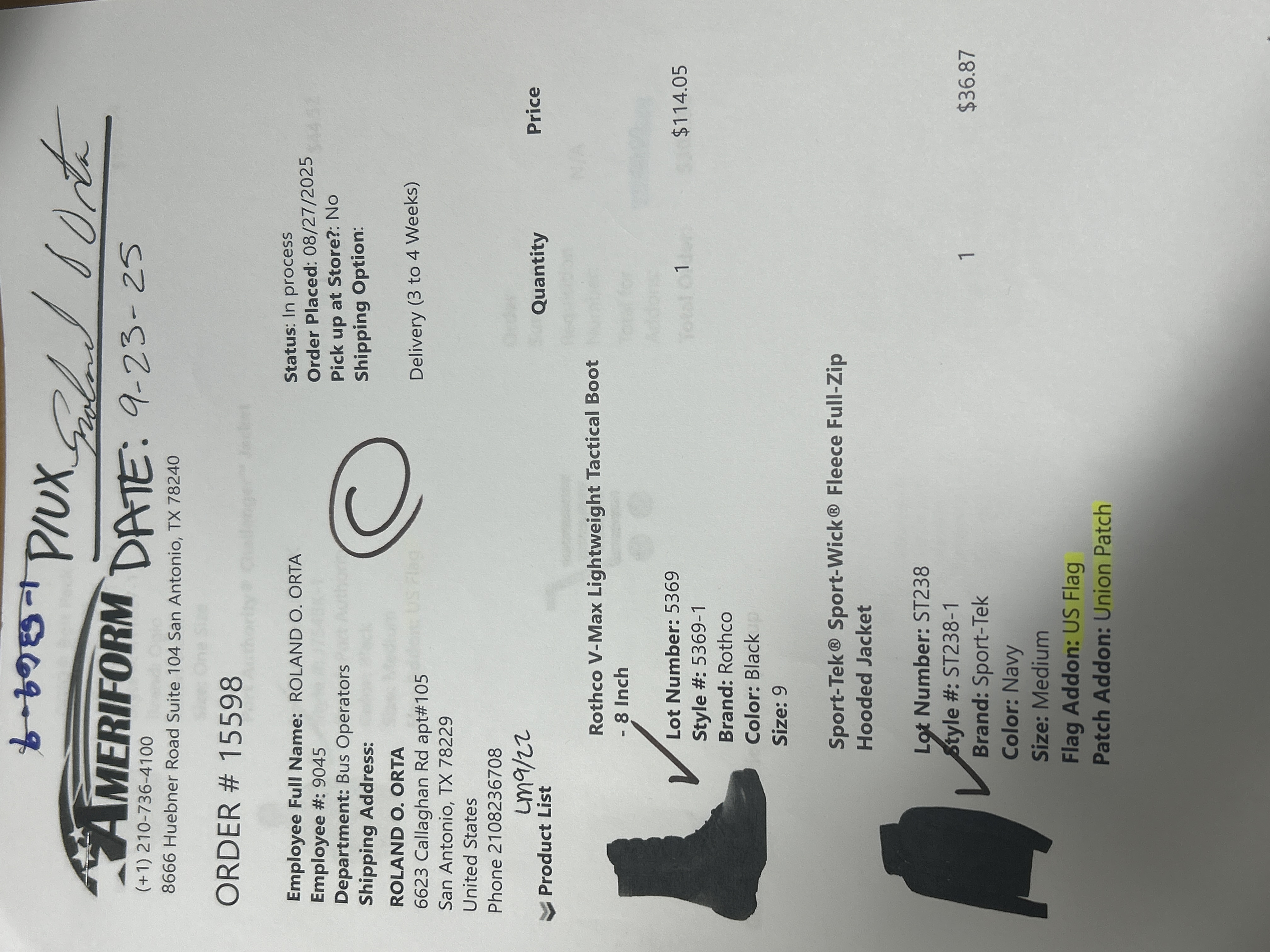 Order # 15598
