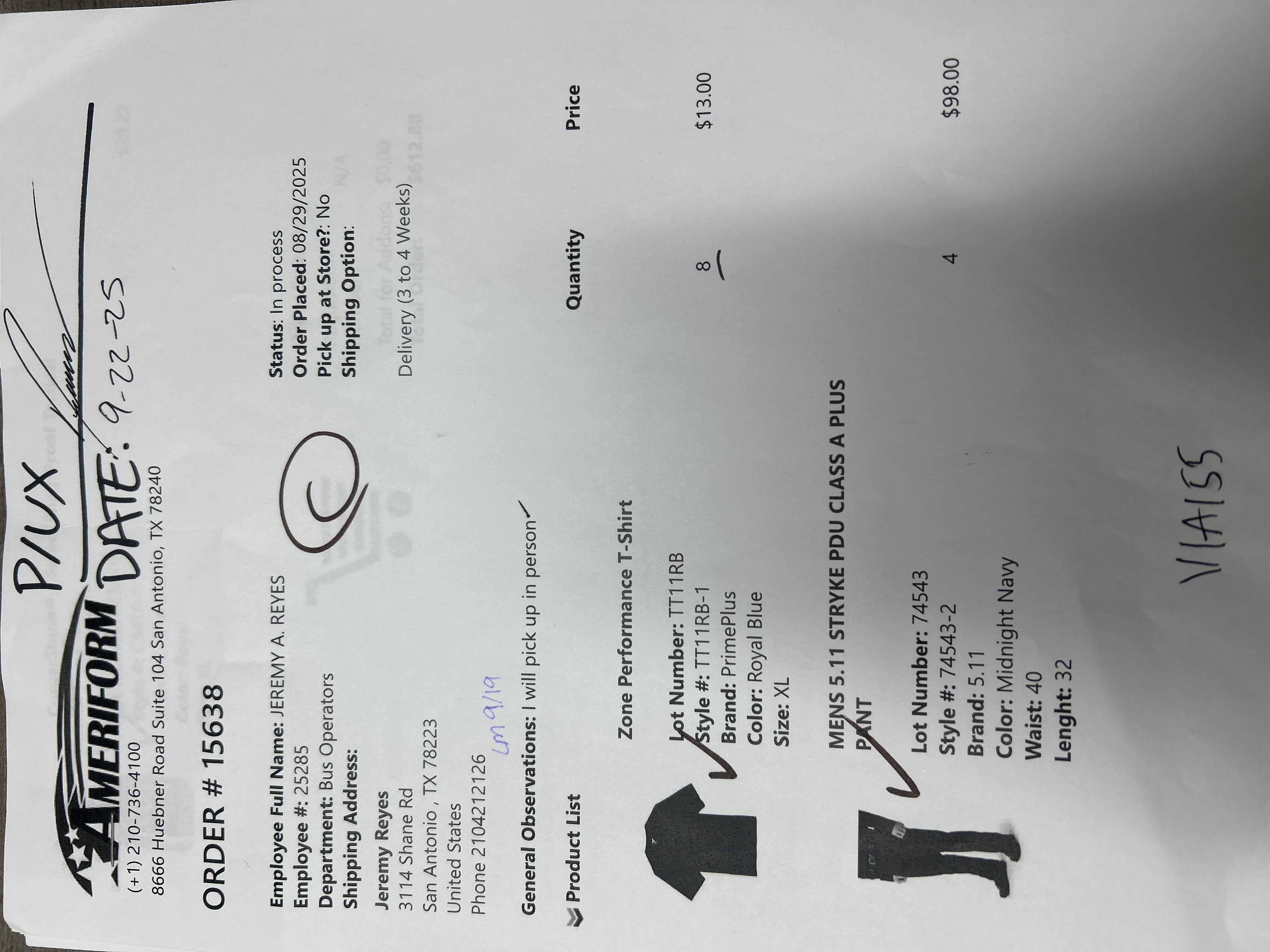 Order # 15638