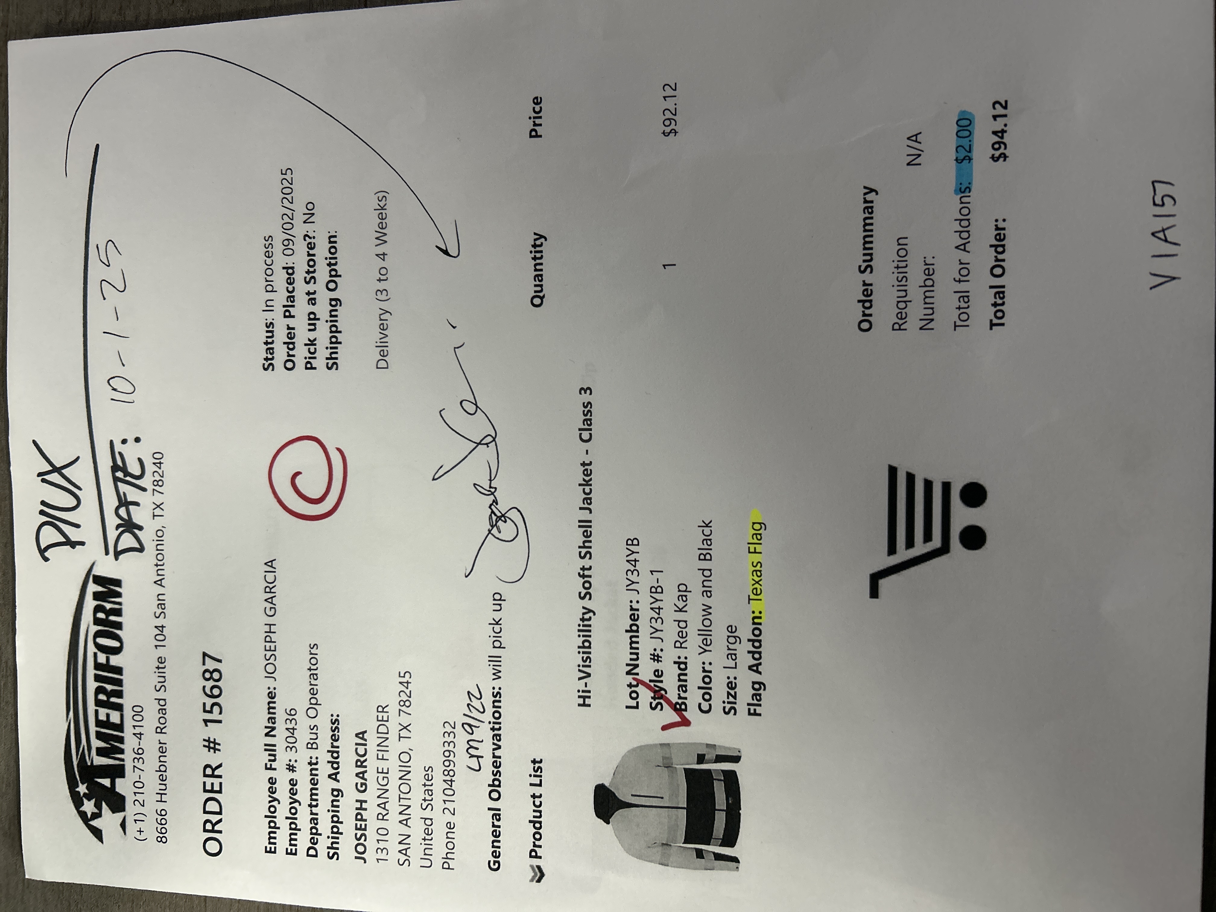 Order # 15687