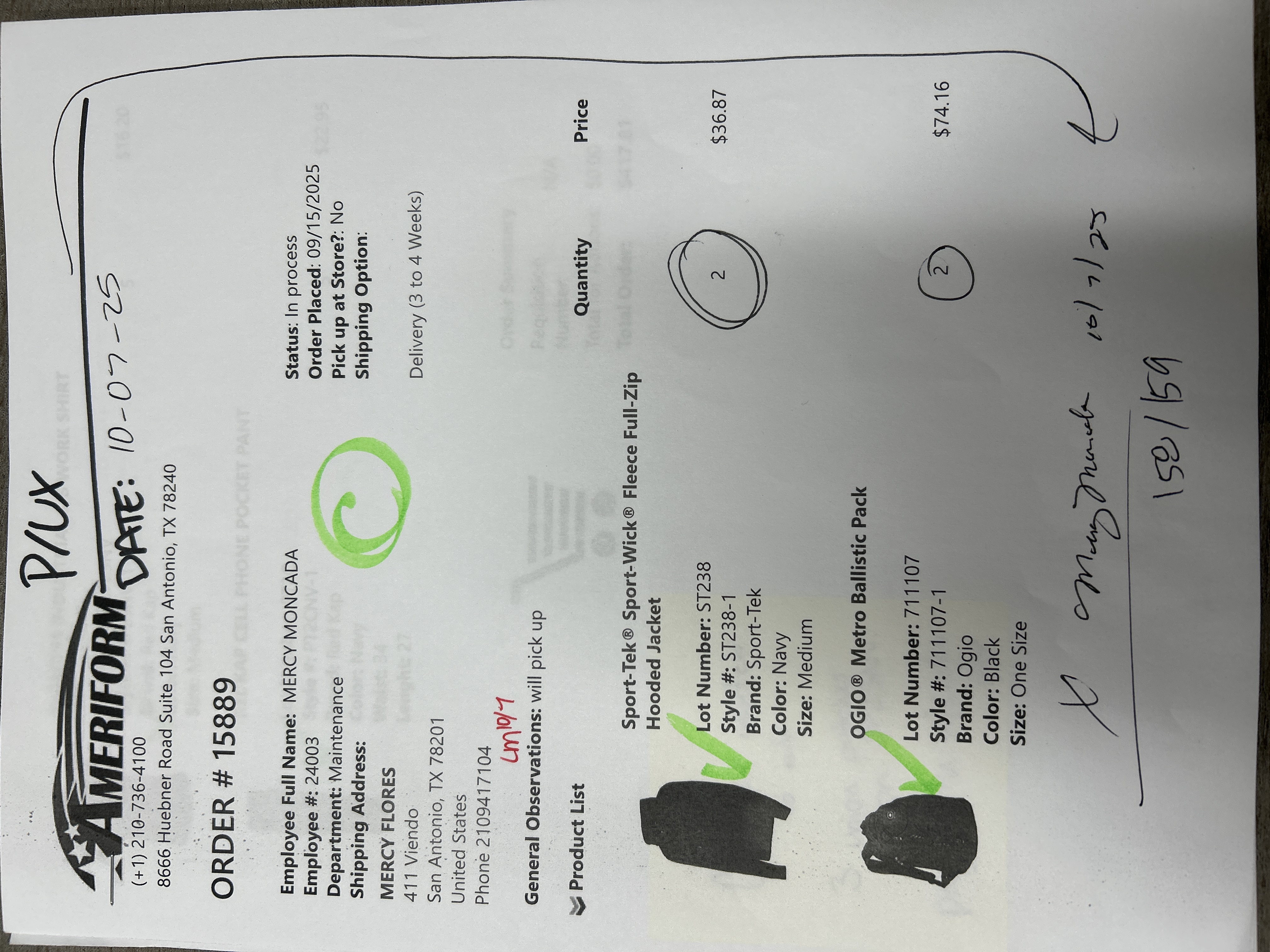 Order # 15889