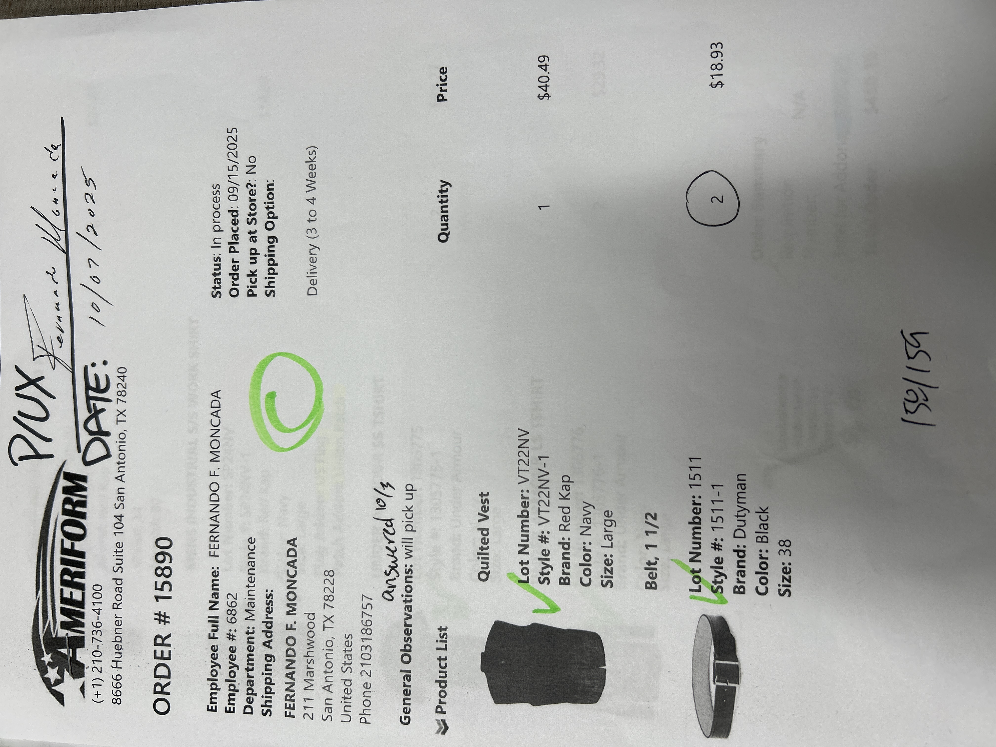 Order # 15890