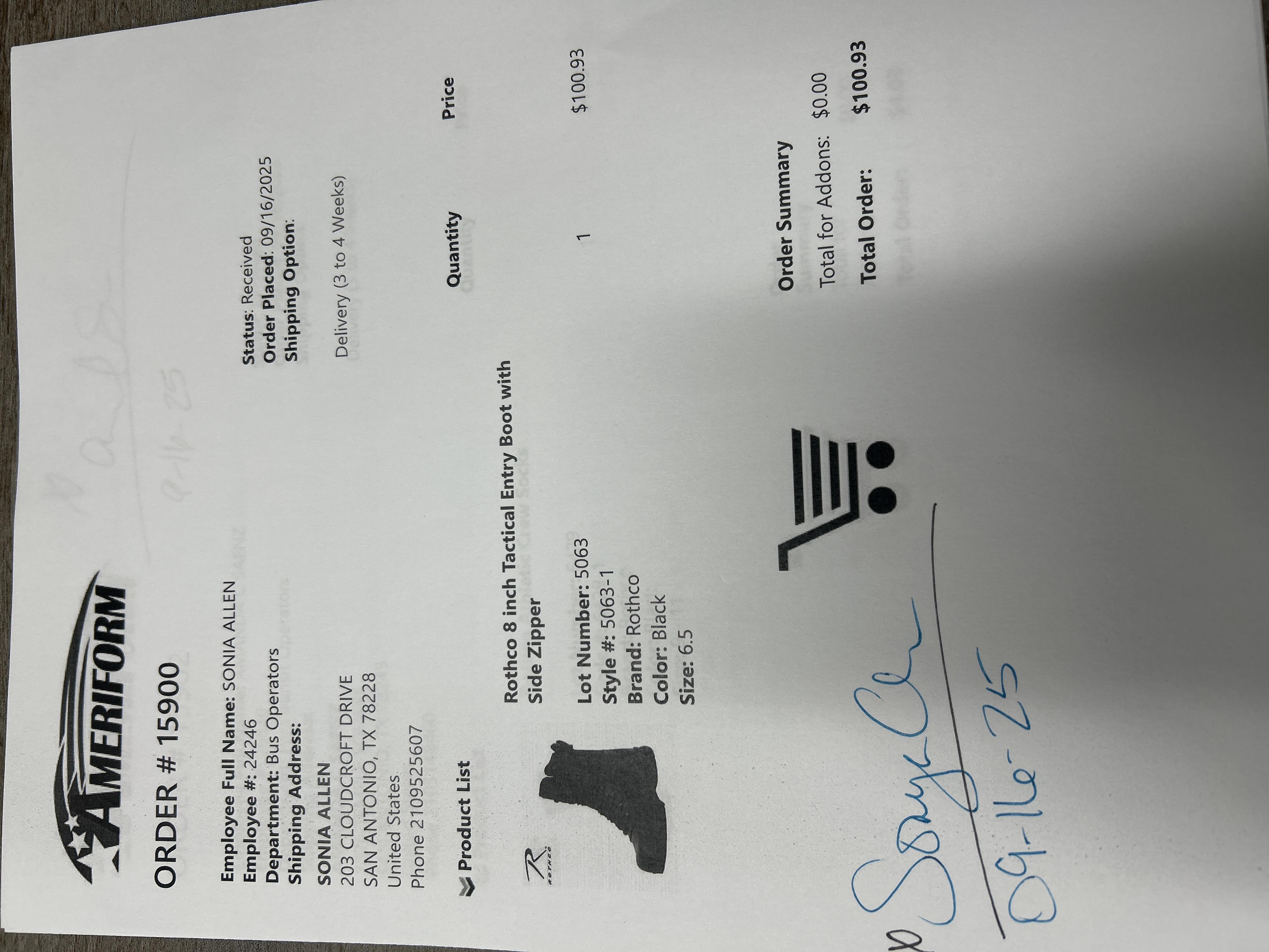 Order # 15900