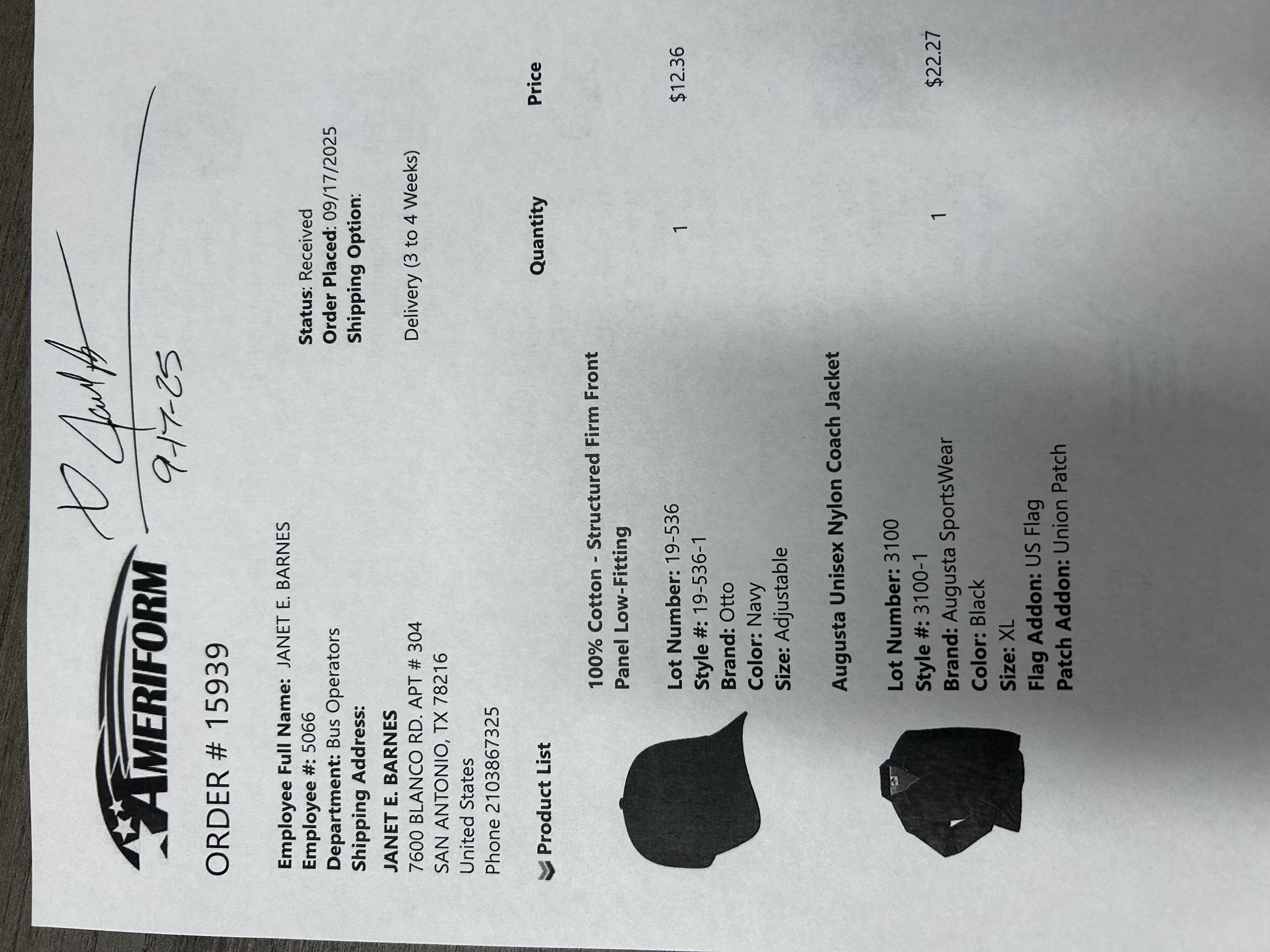 Order # 15939