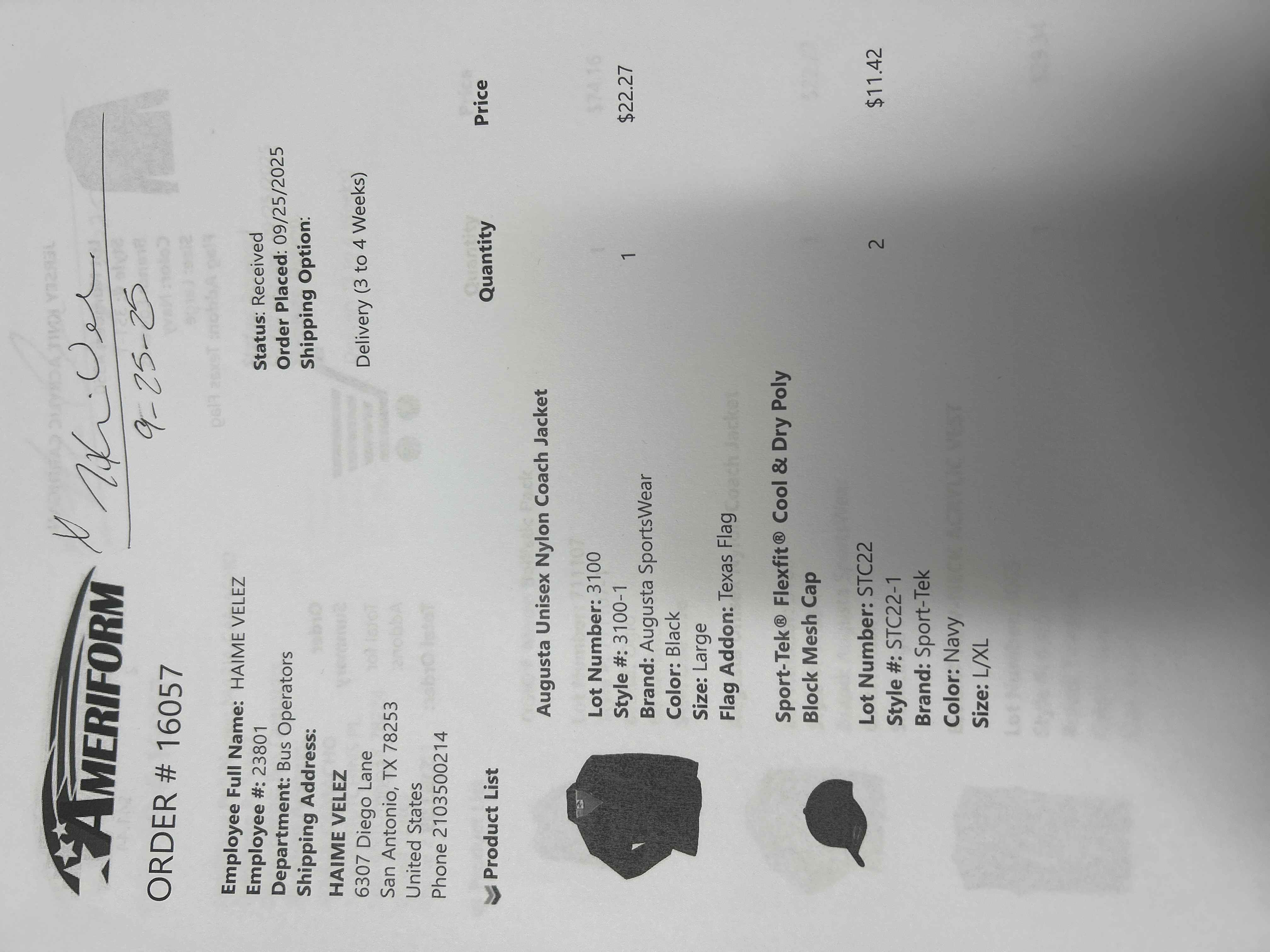 Order # 16057