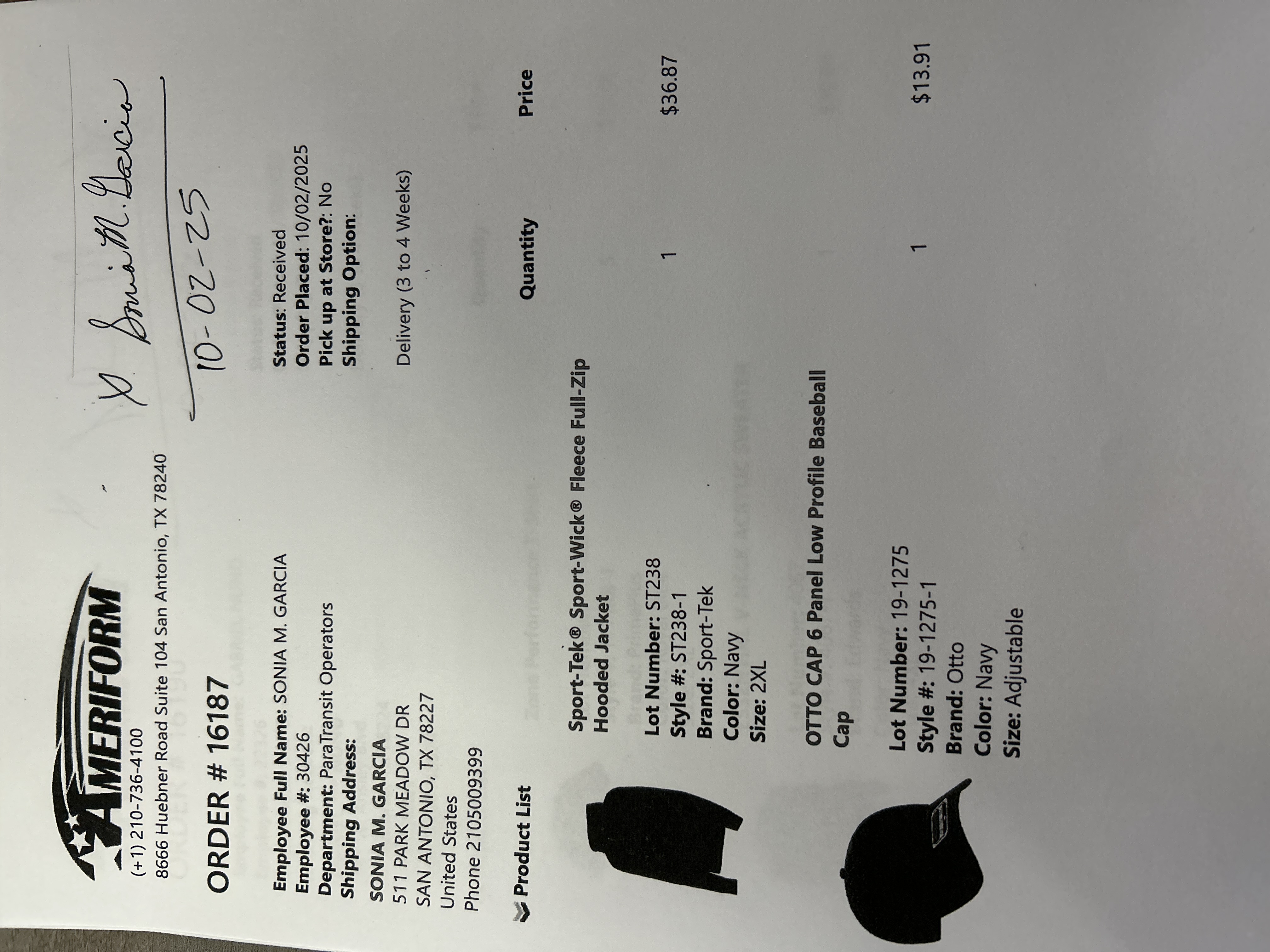 Order # 16187