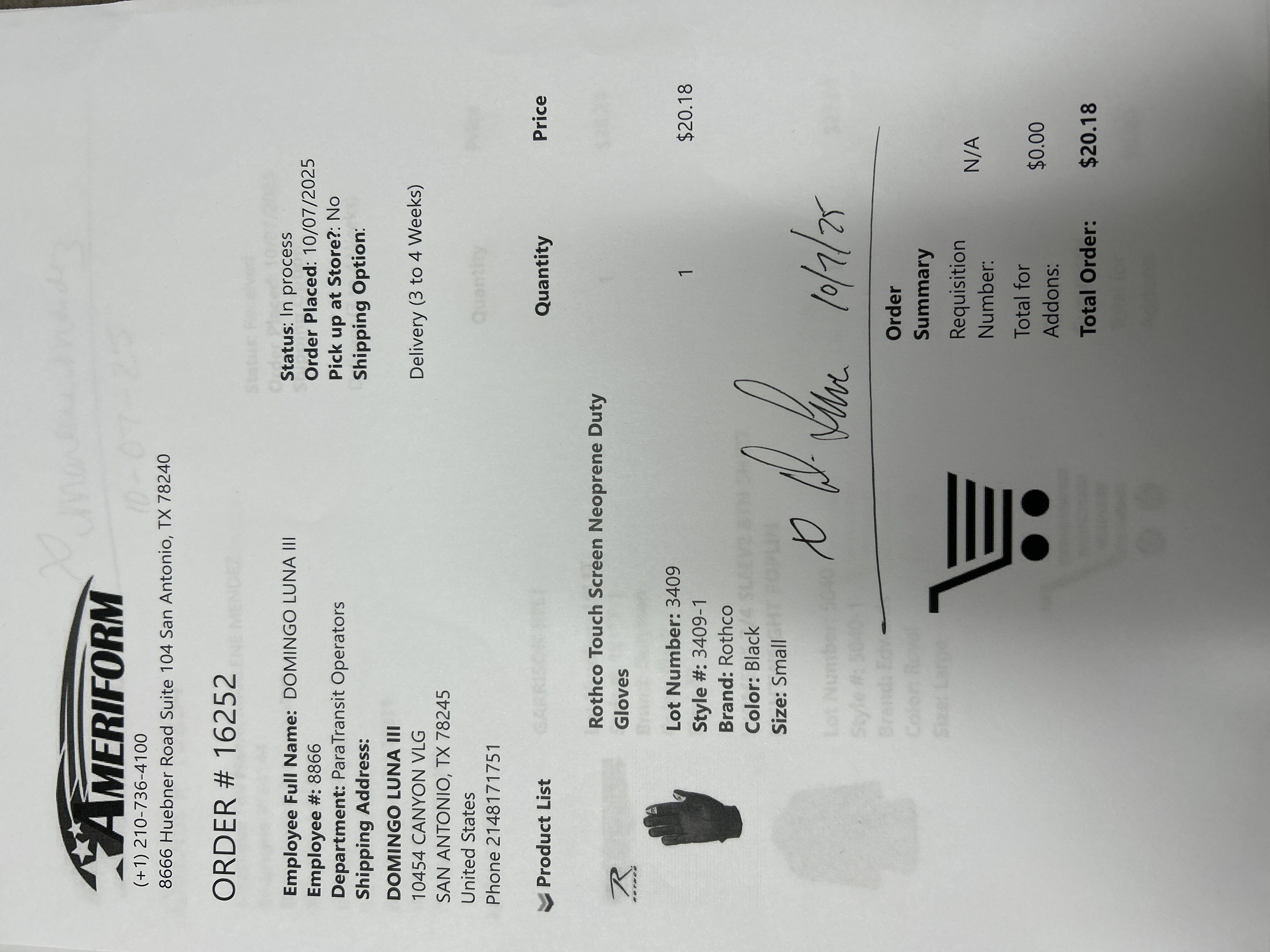 Order # 16252