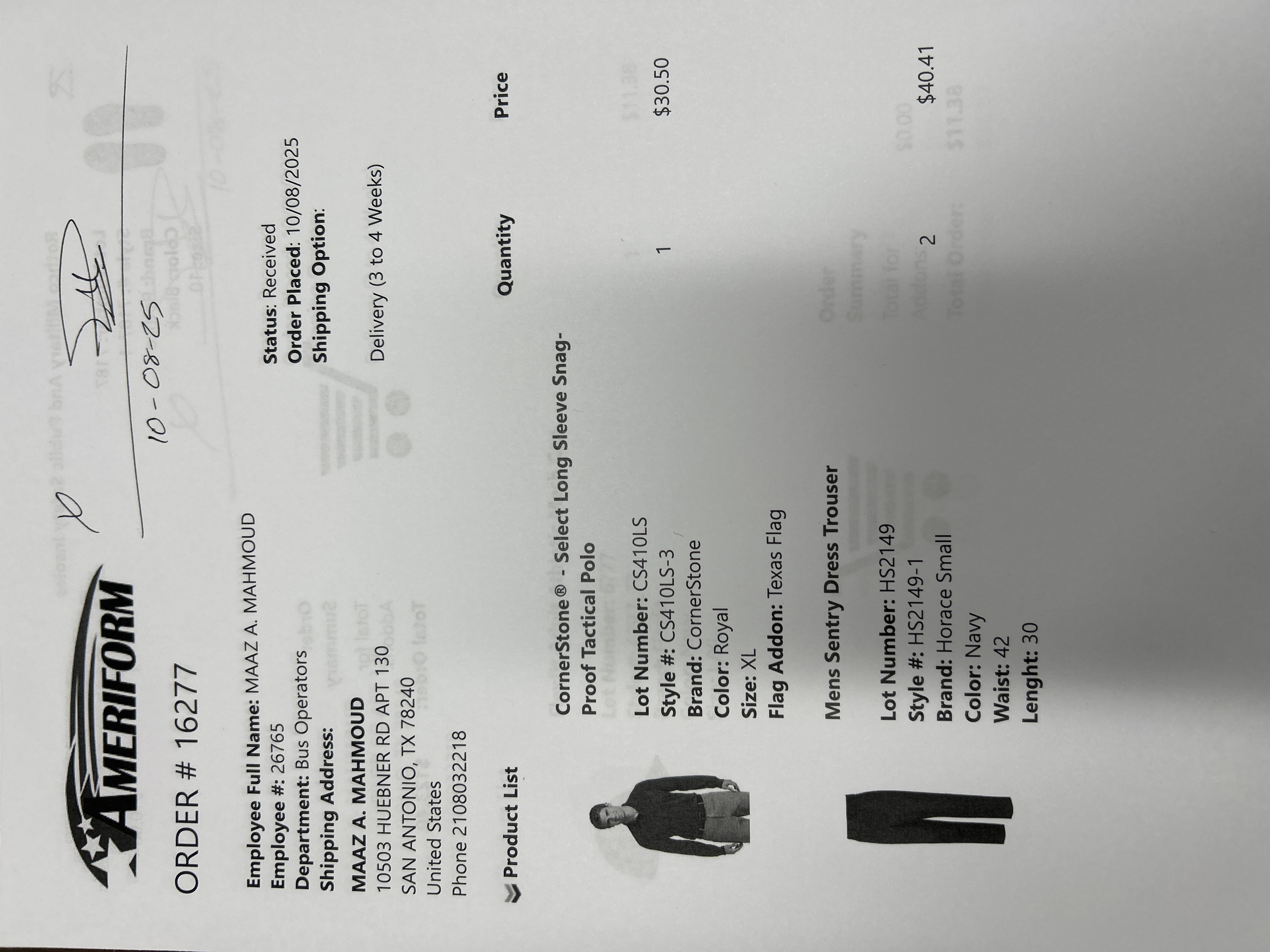 Order # 16277