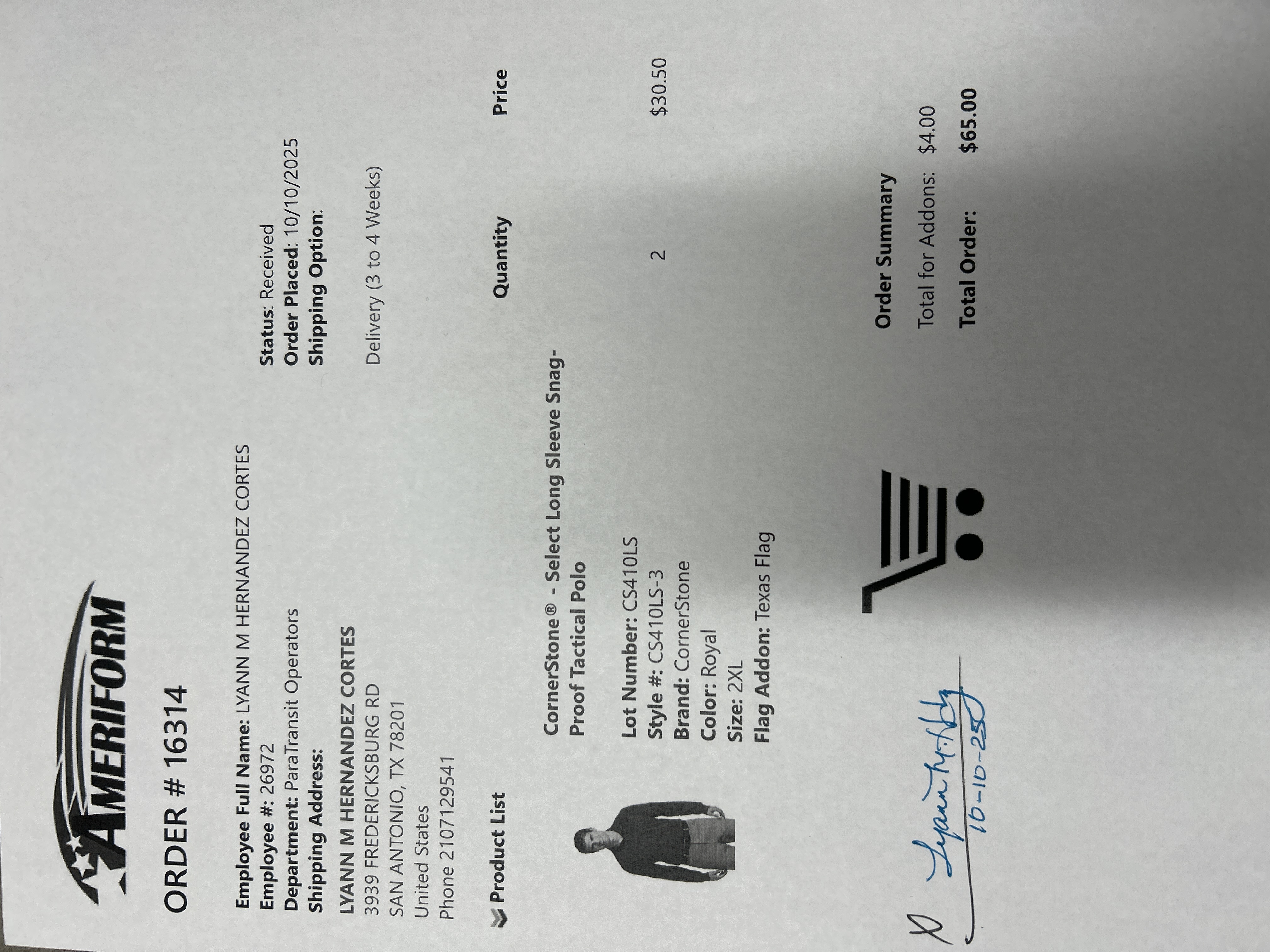 Order # 16314