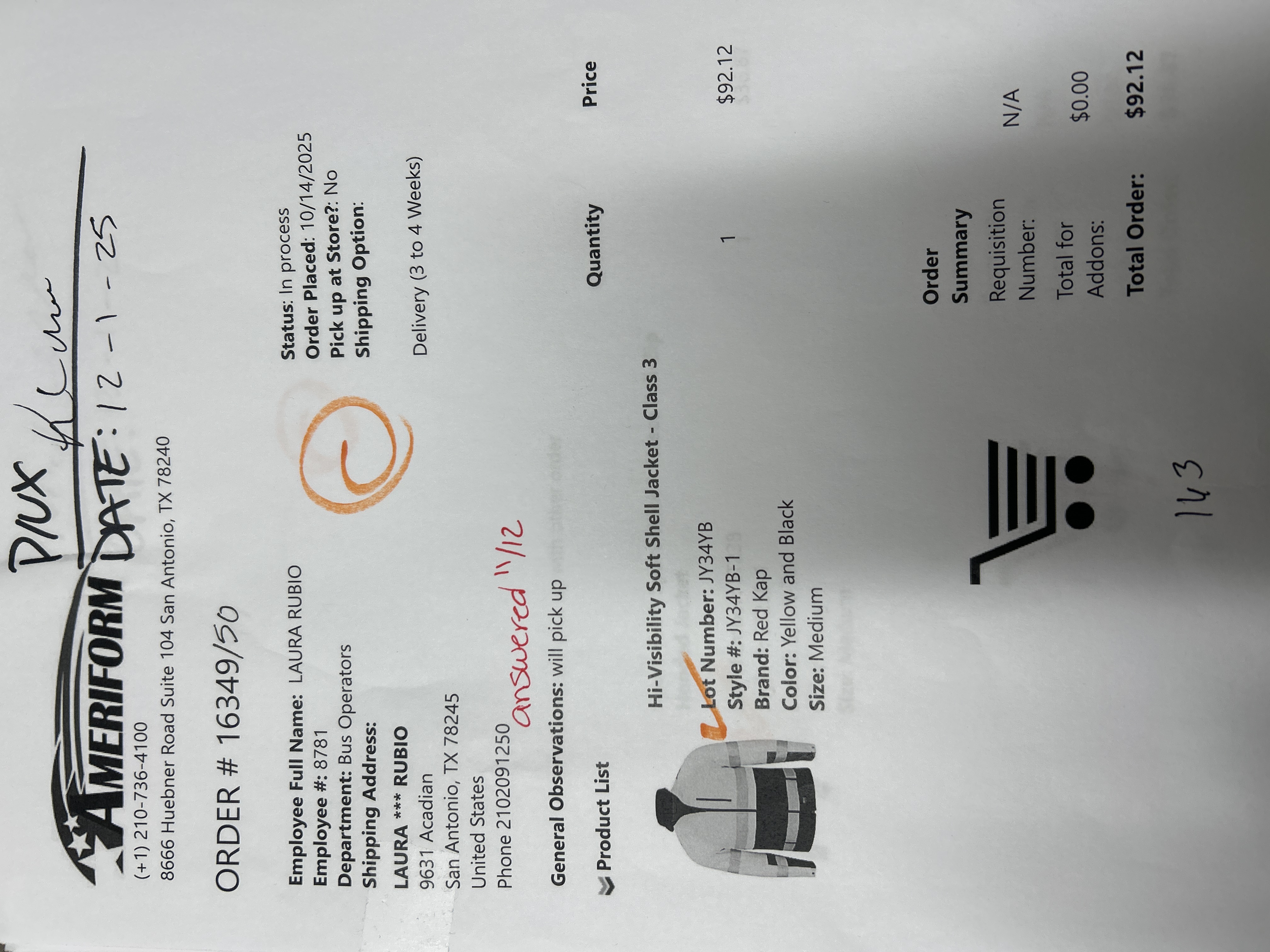 Order # 16349