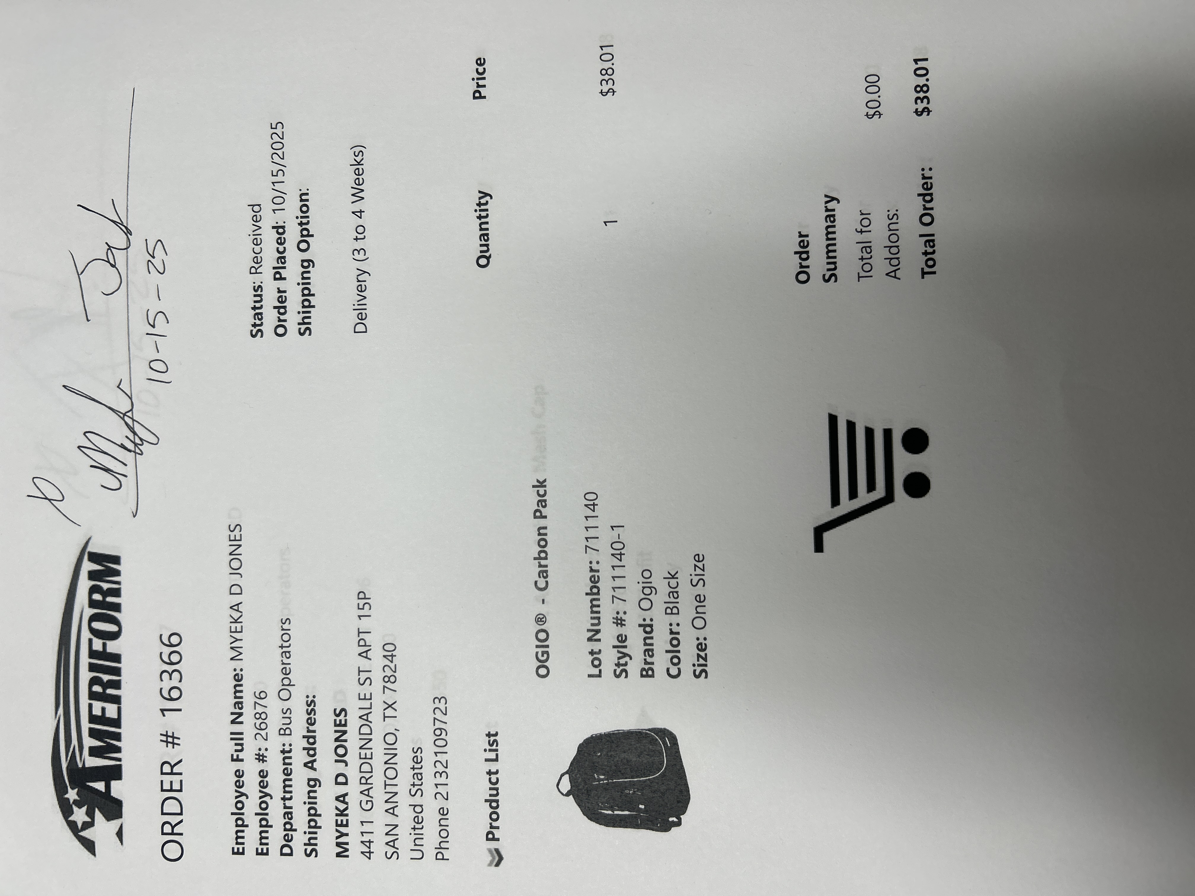 Order # 16366