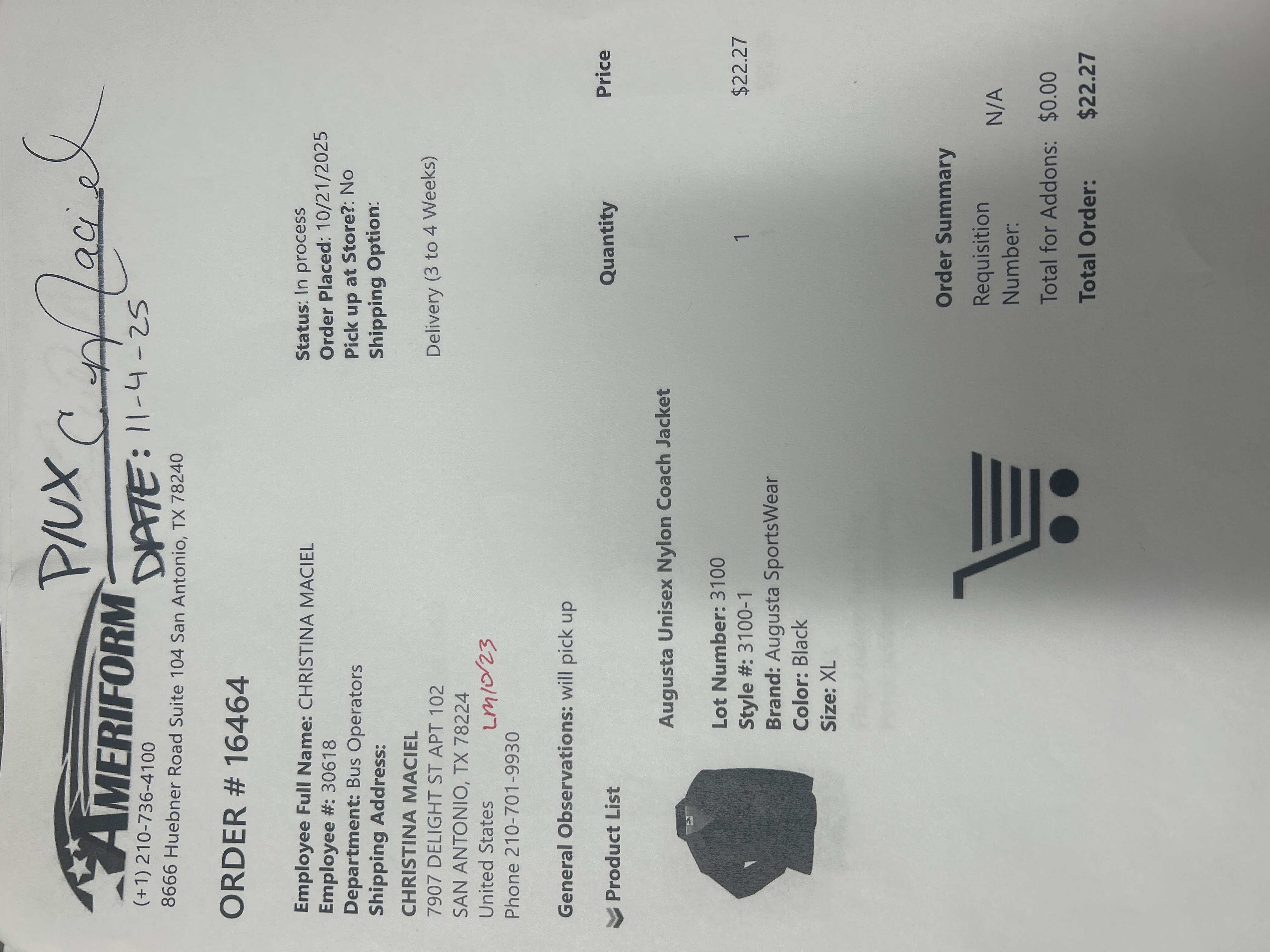 Order # 16464