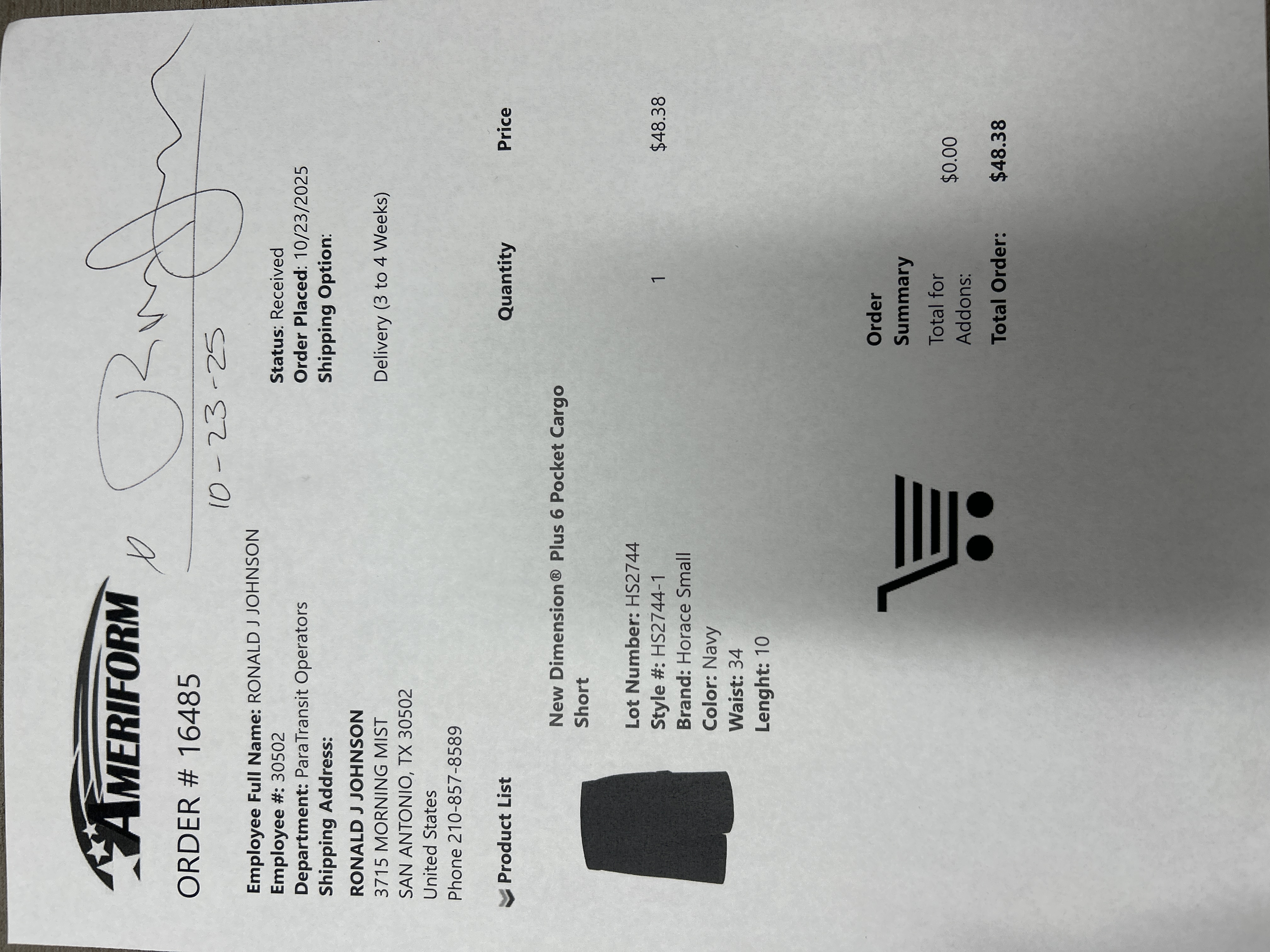 Order # 16485