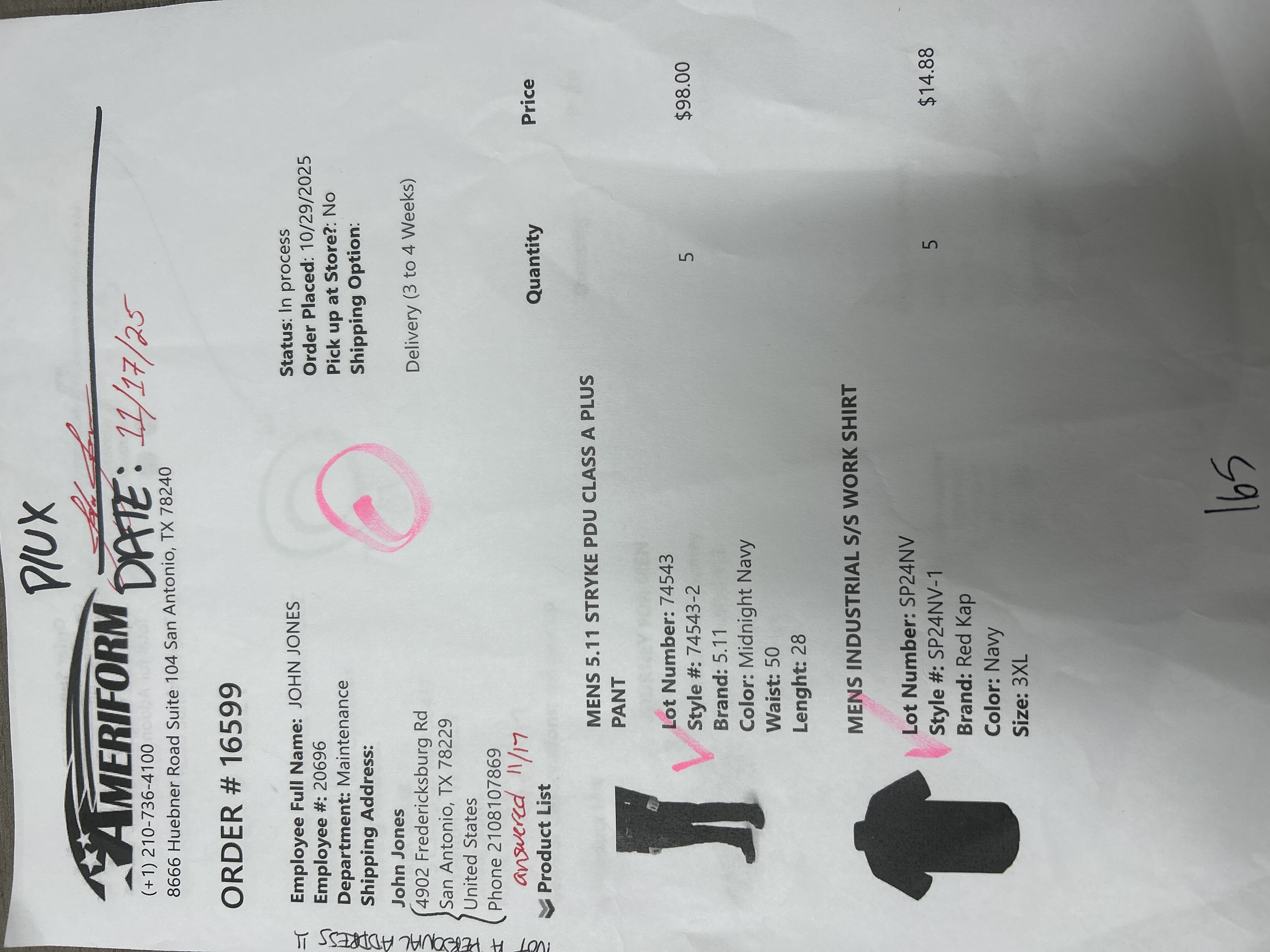 Order # 16599
