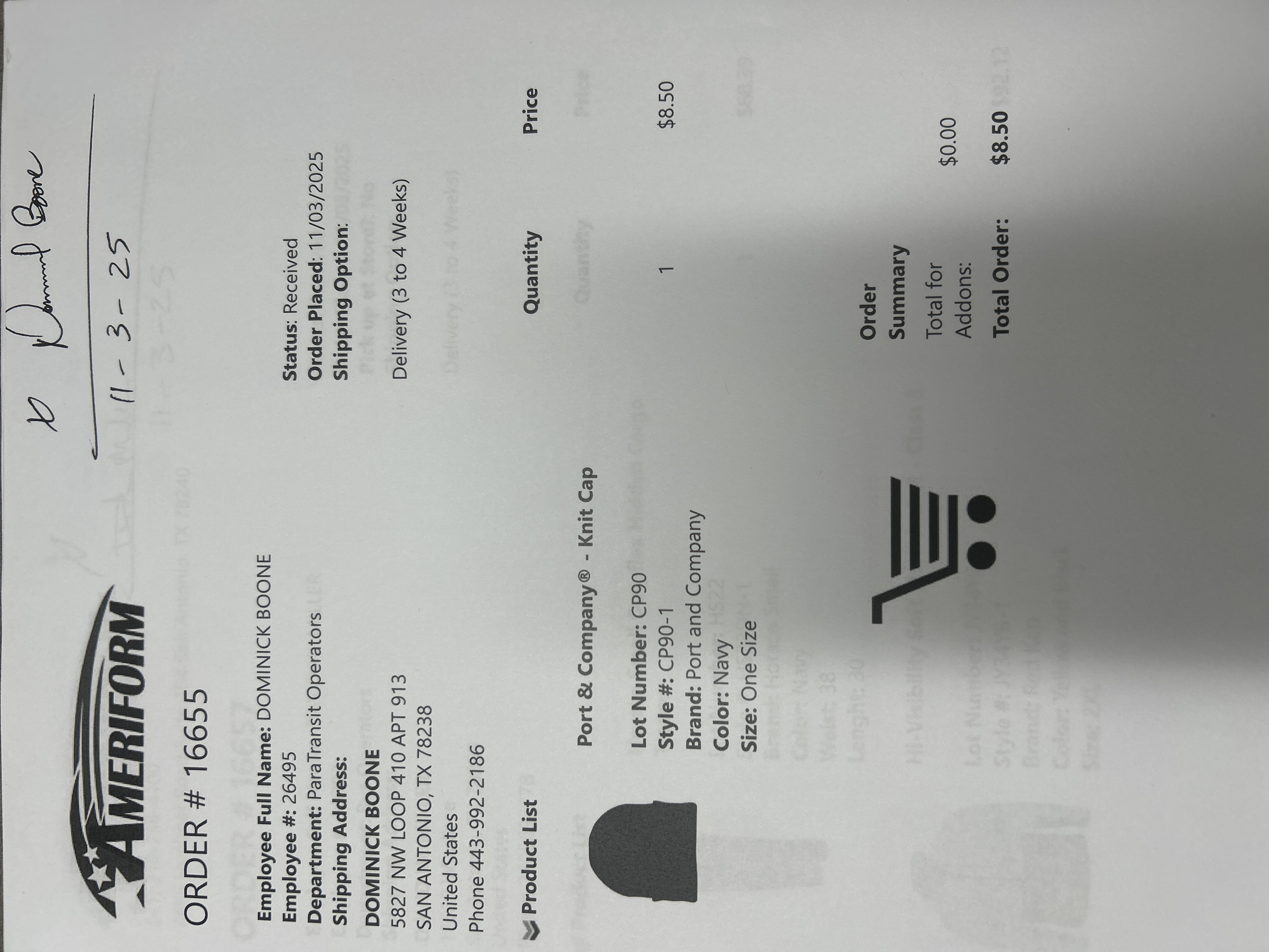 Order # 16655