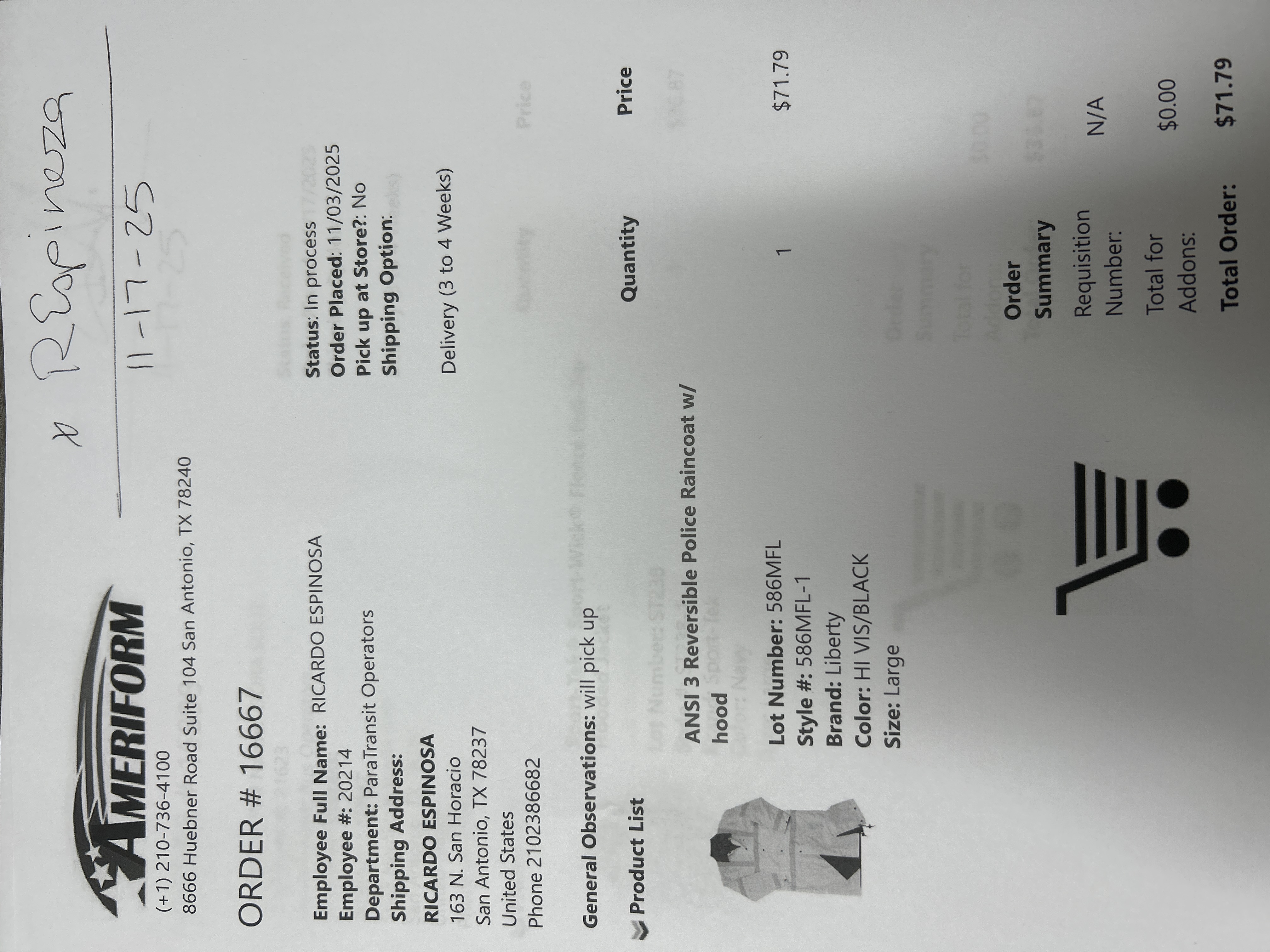 Order # 16667