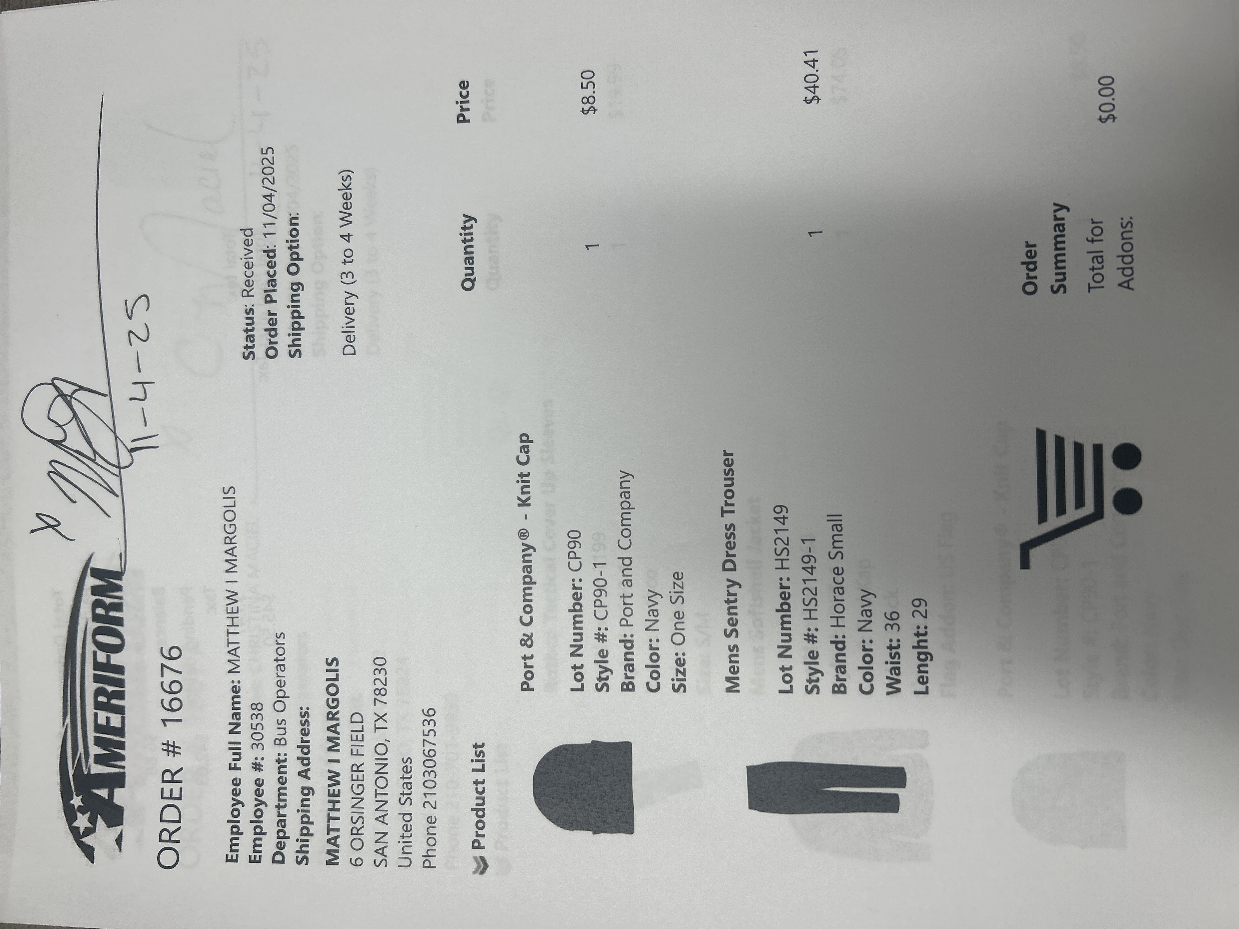 Order # 16676