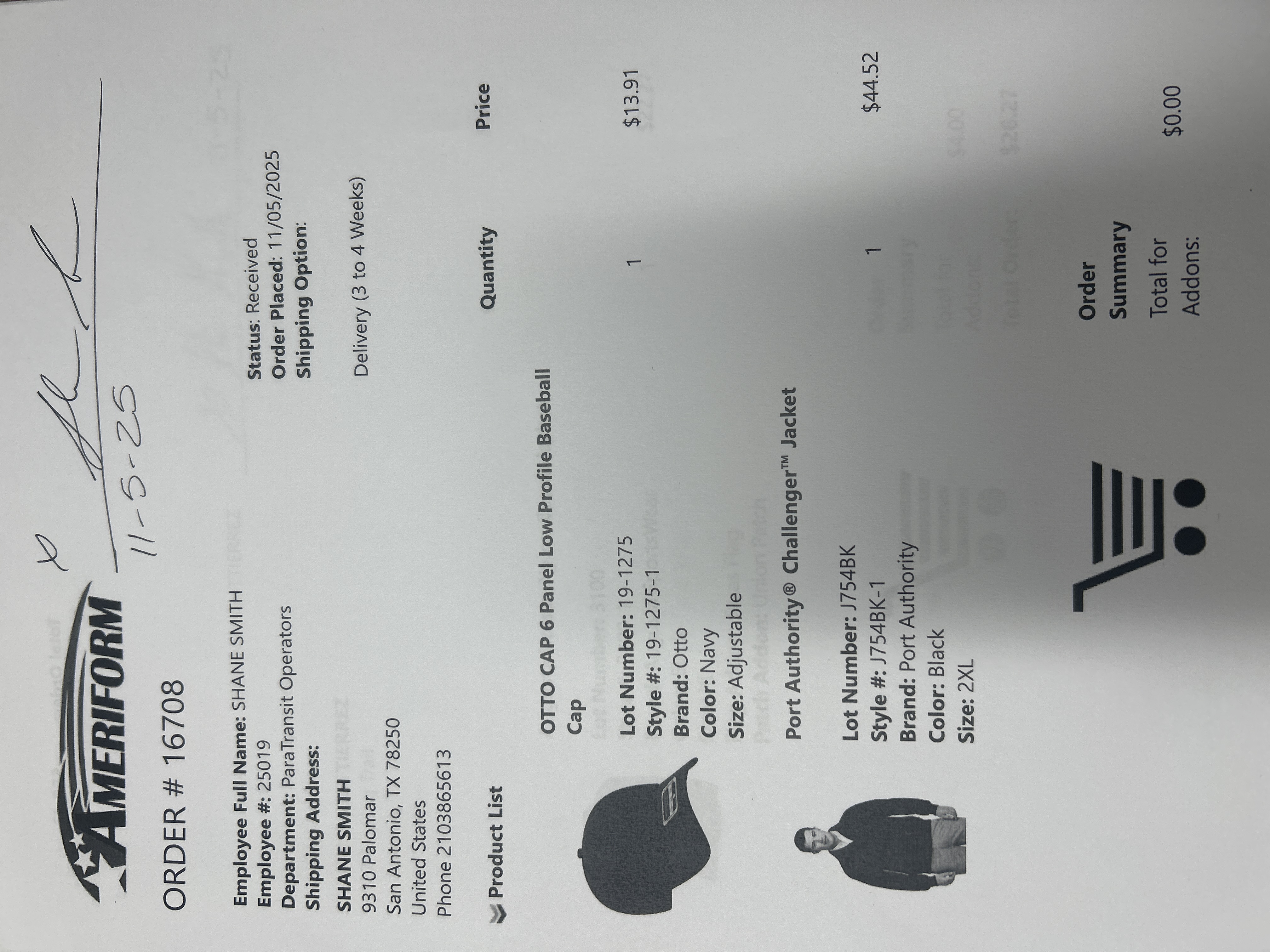 Order # 16708