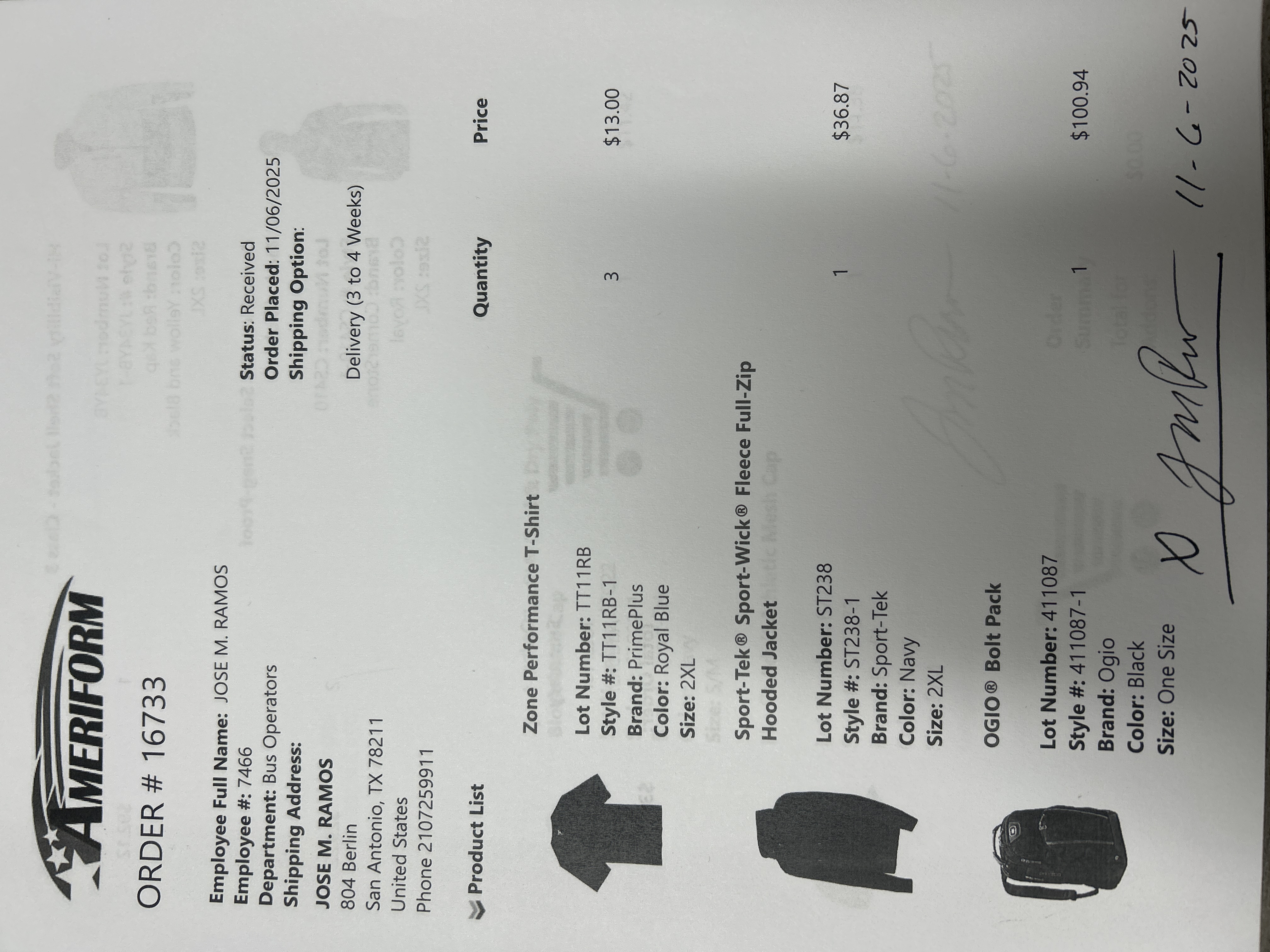 Order # 16733
