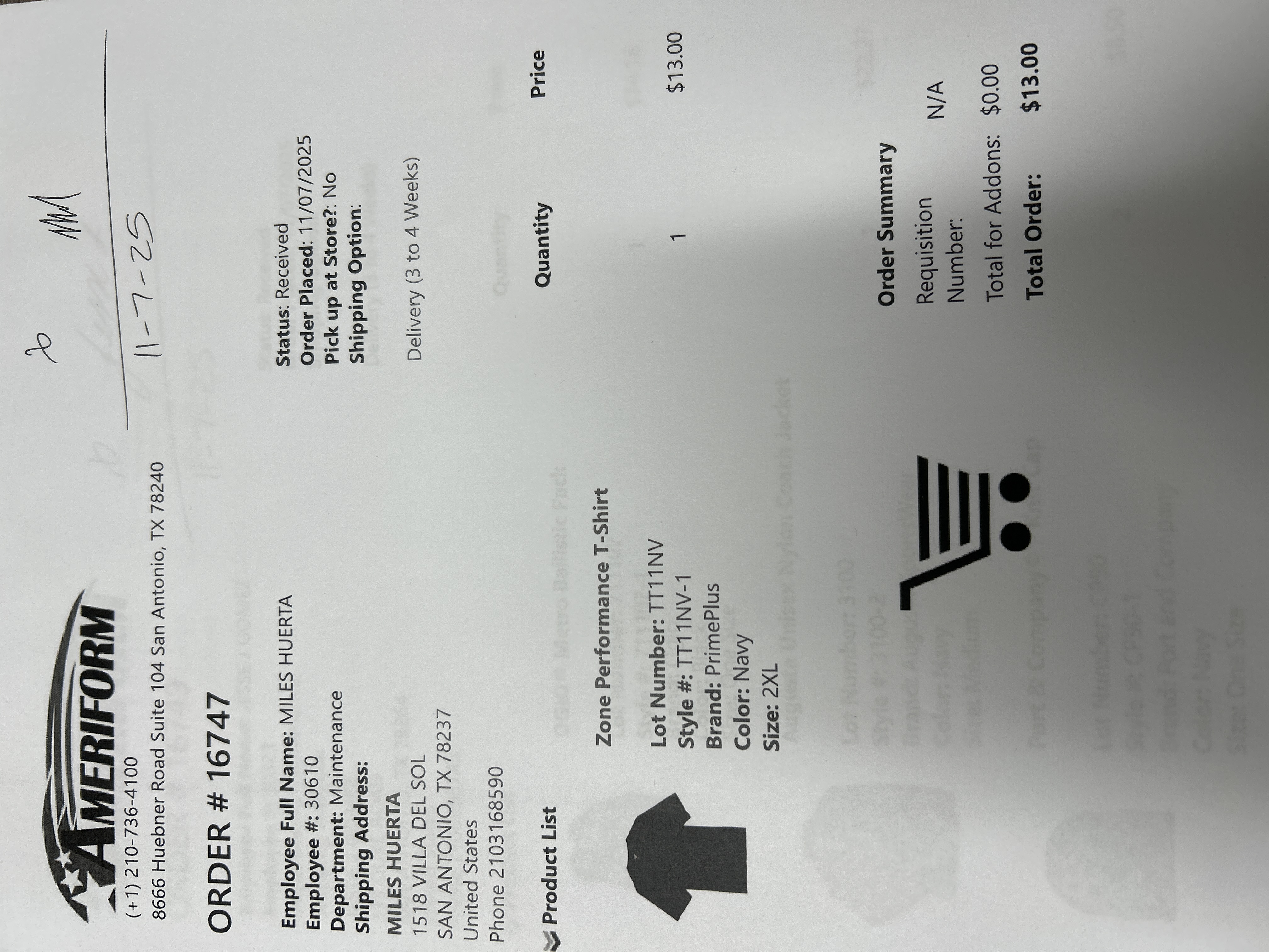 Order # 16747