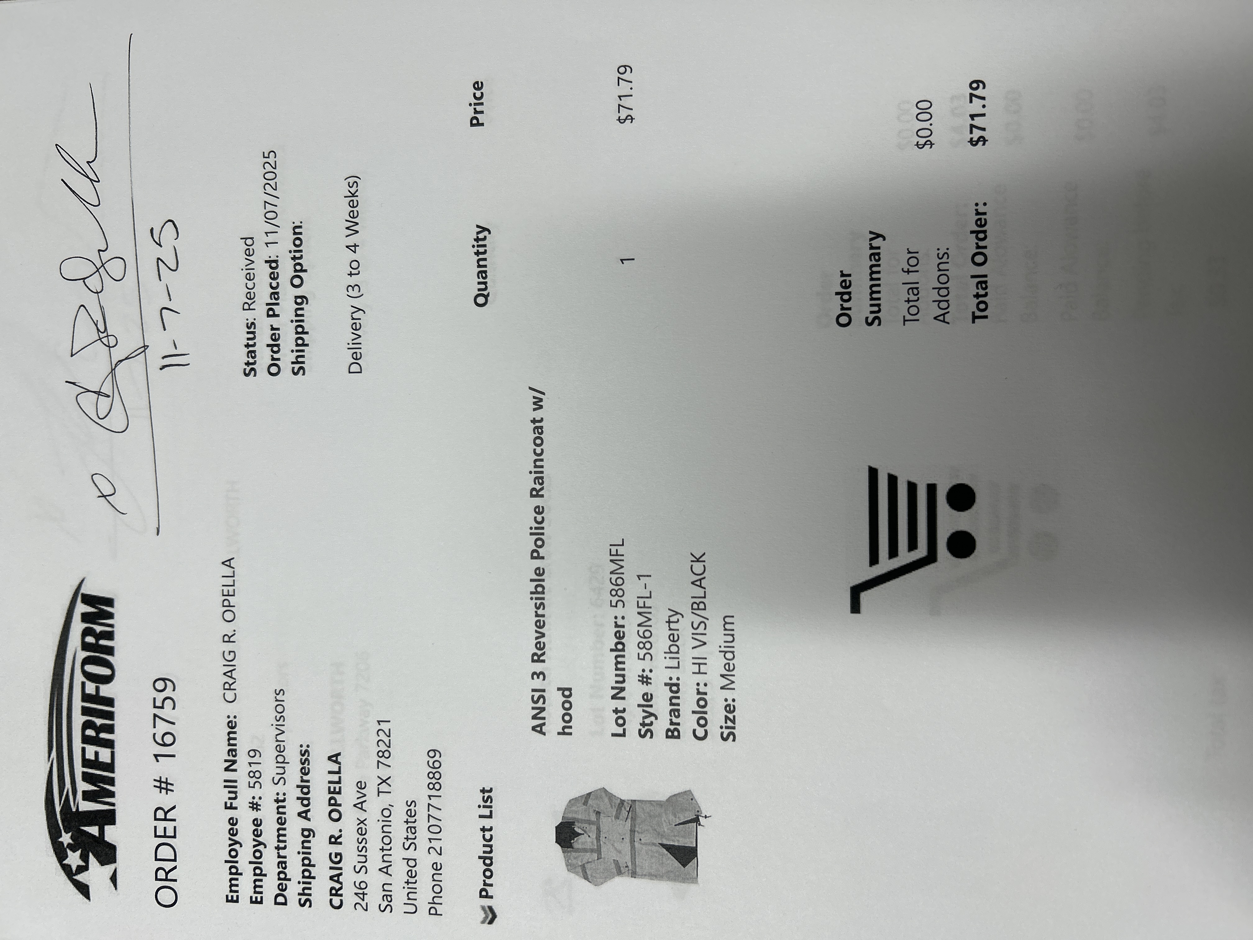 Order # 16759