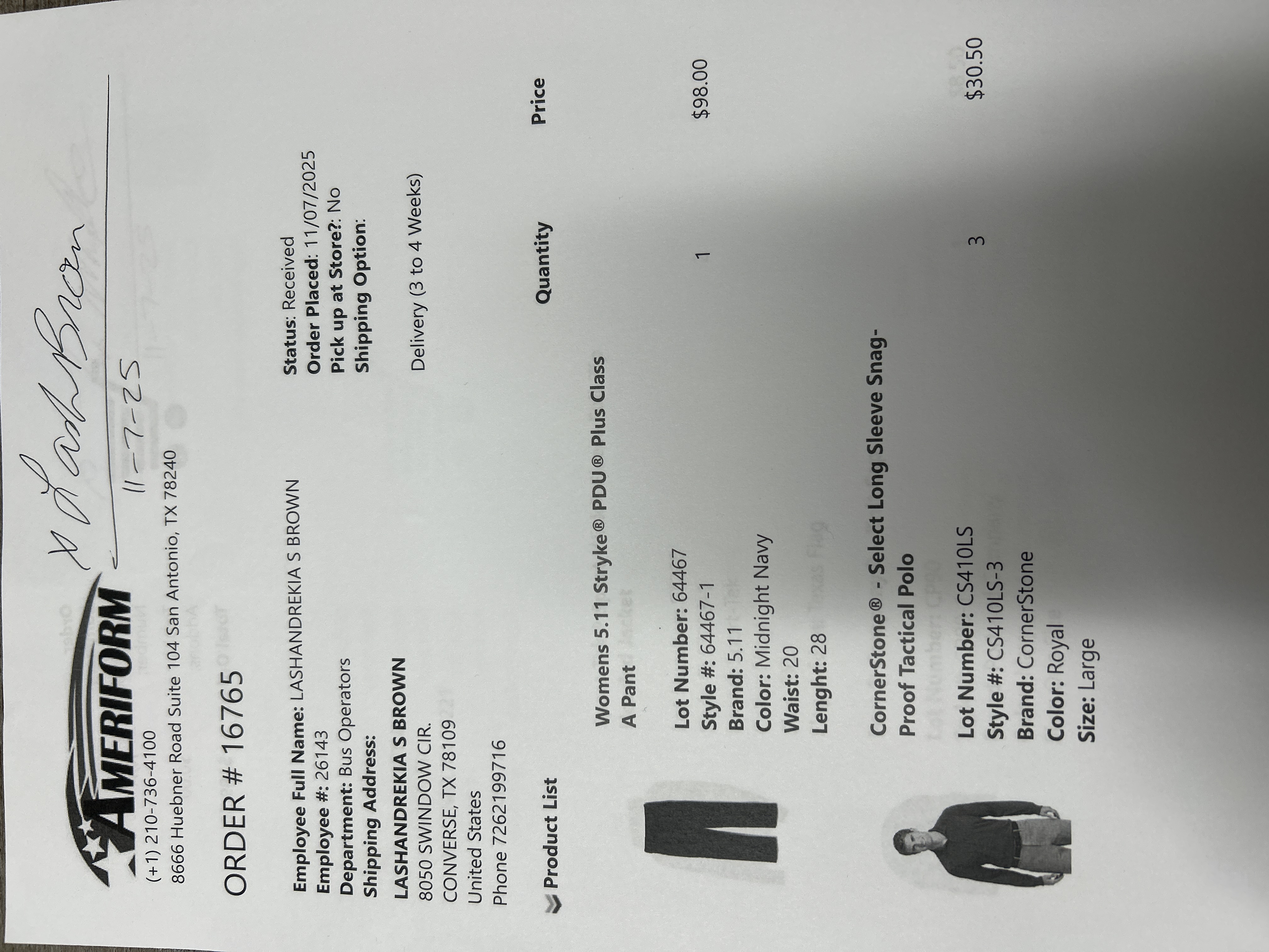 Order # 16765