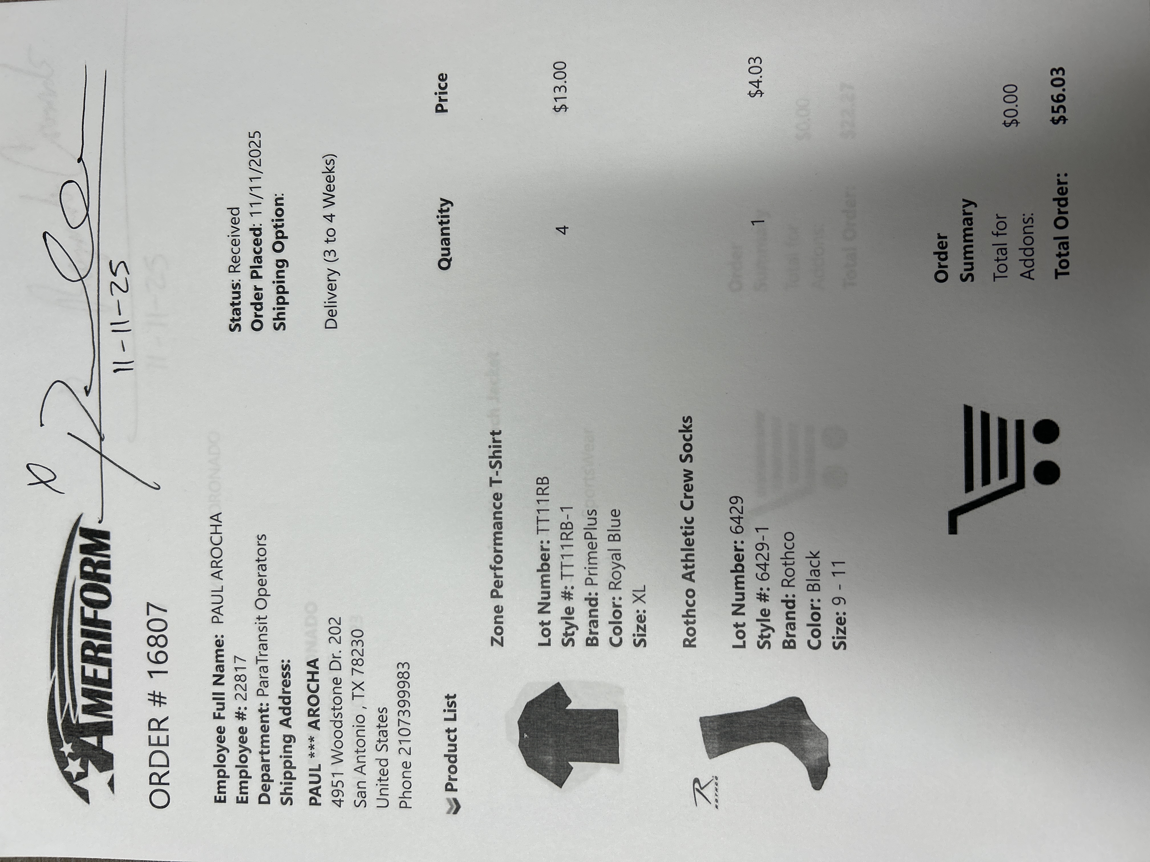 Order # 16807
