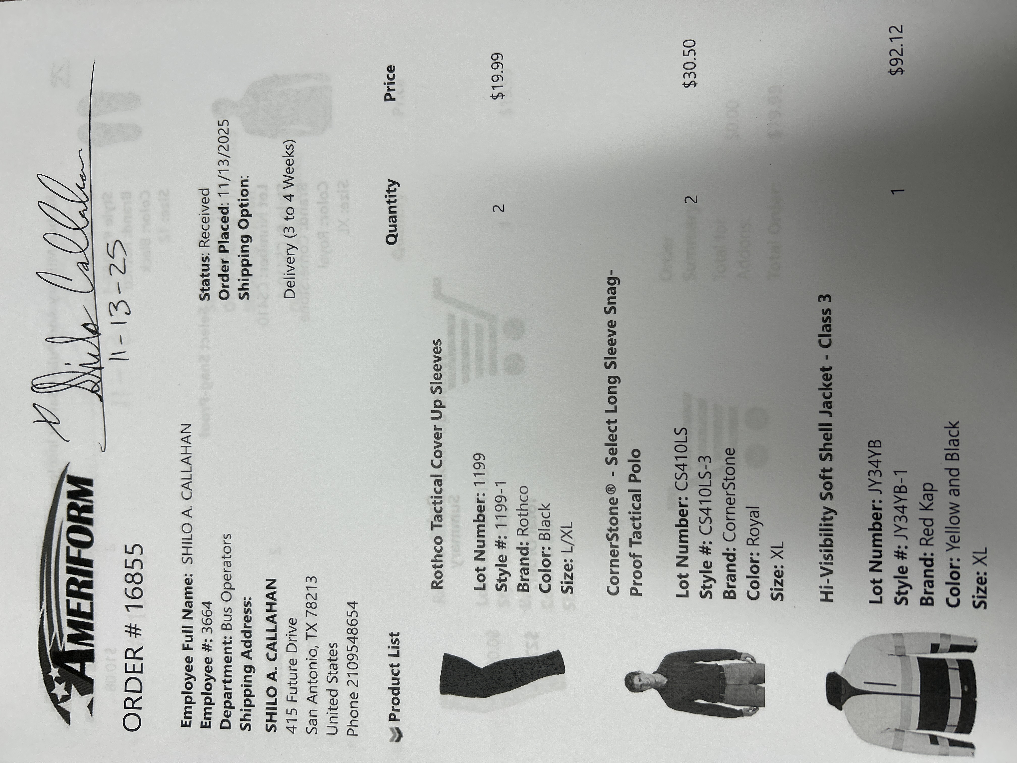 Order # 16855