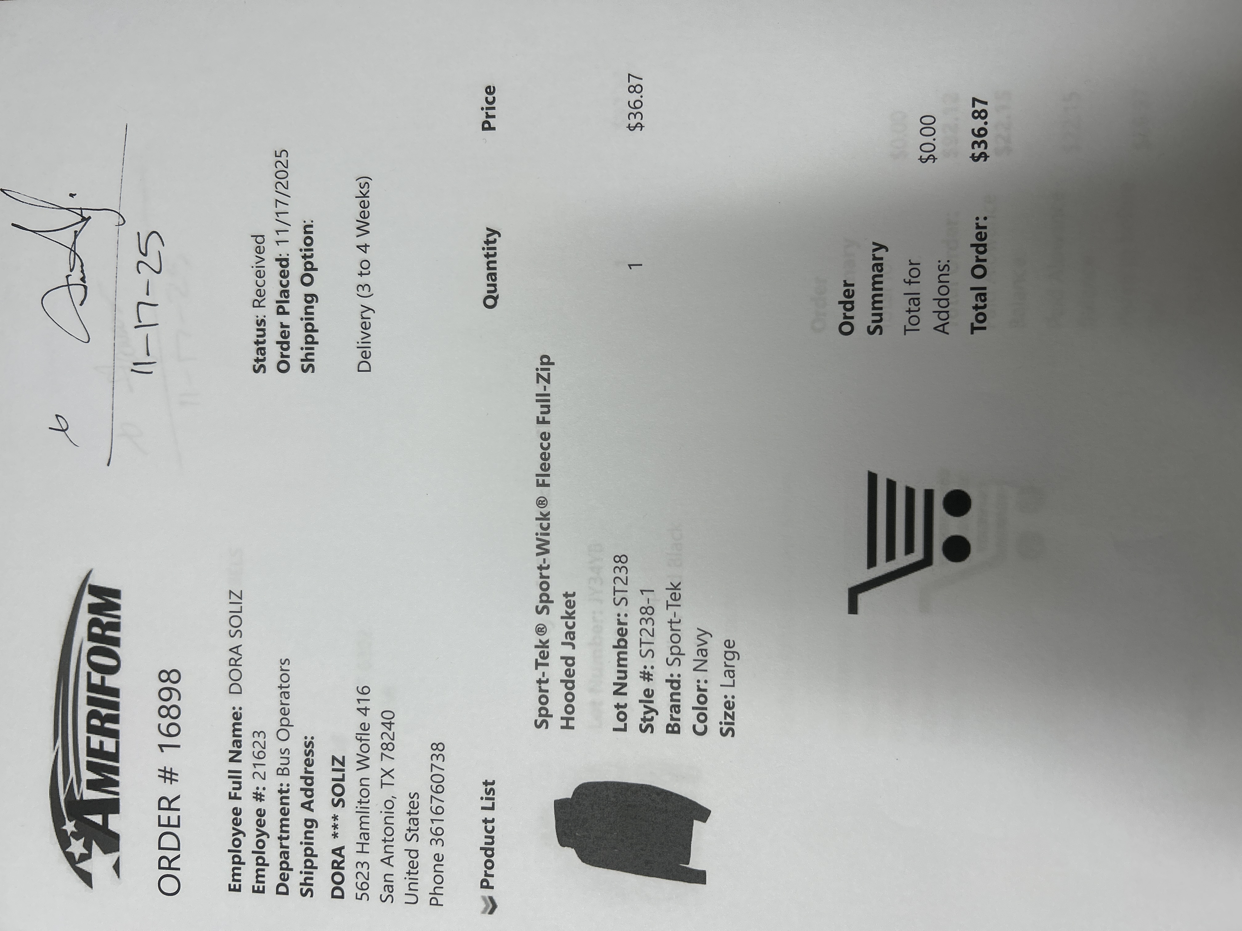 Order # 16898