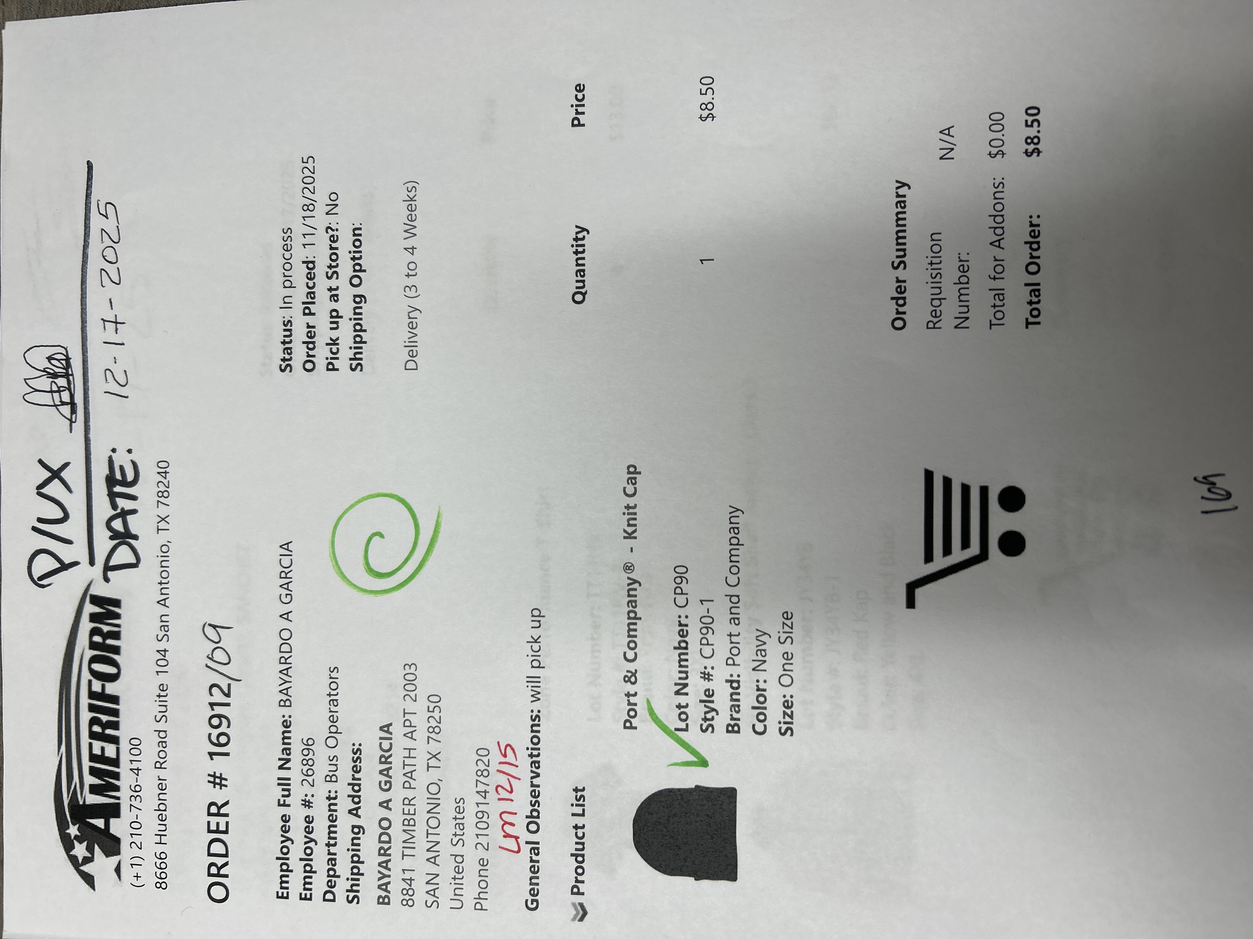 Order # 16912