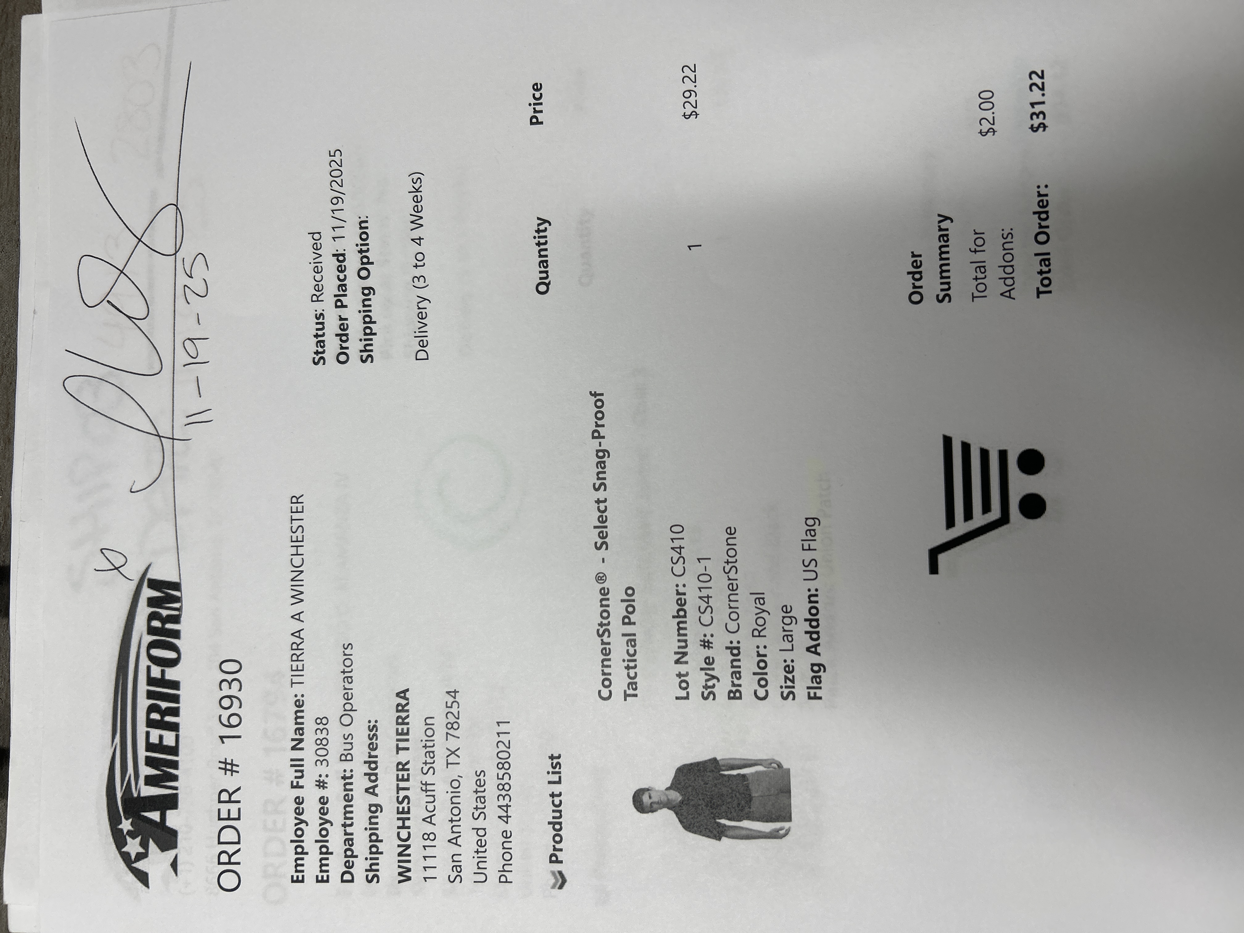 Order # 16930