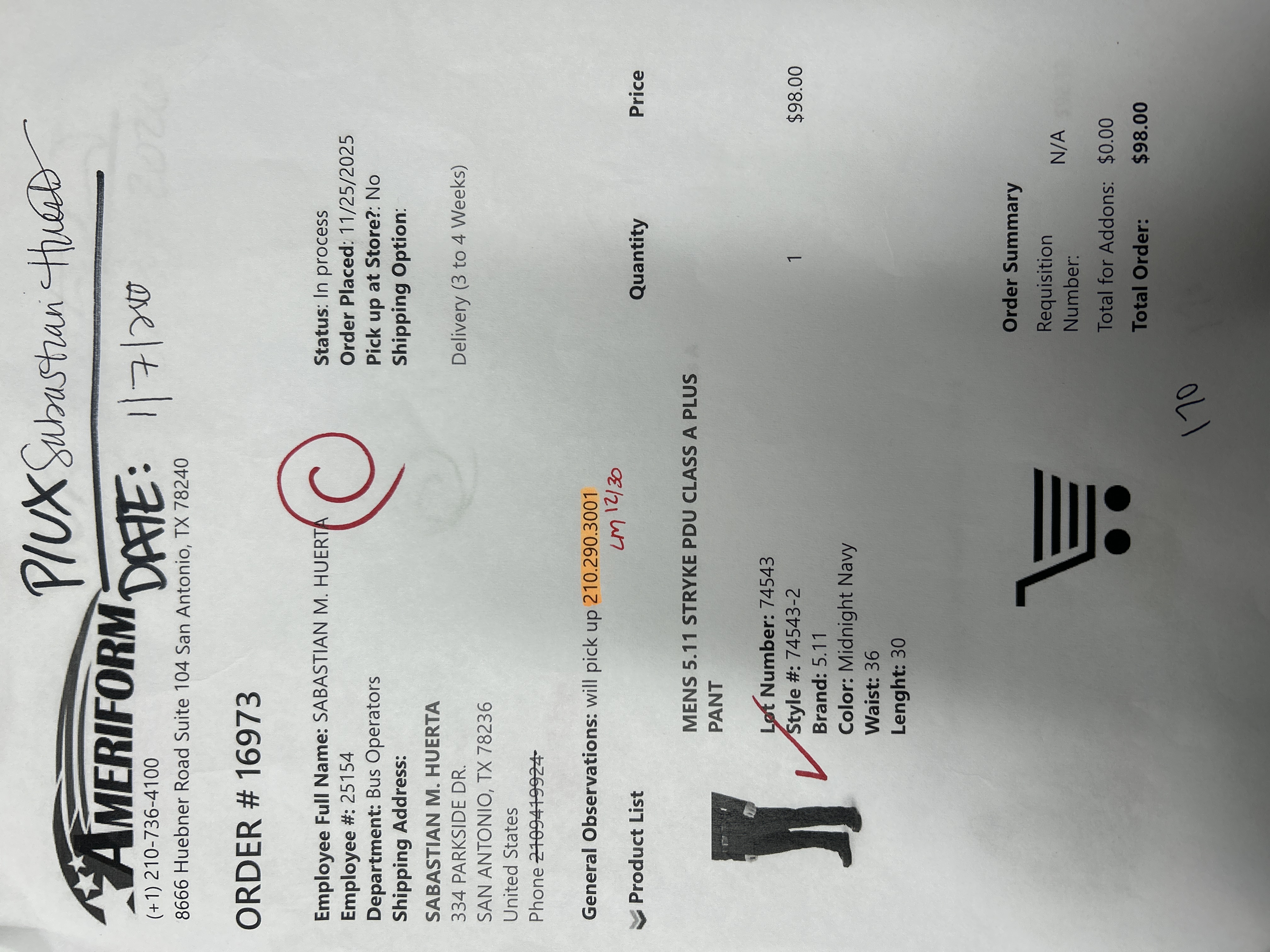 Order # 16973