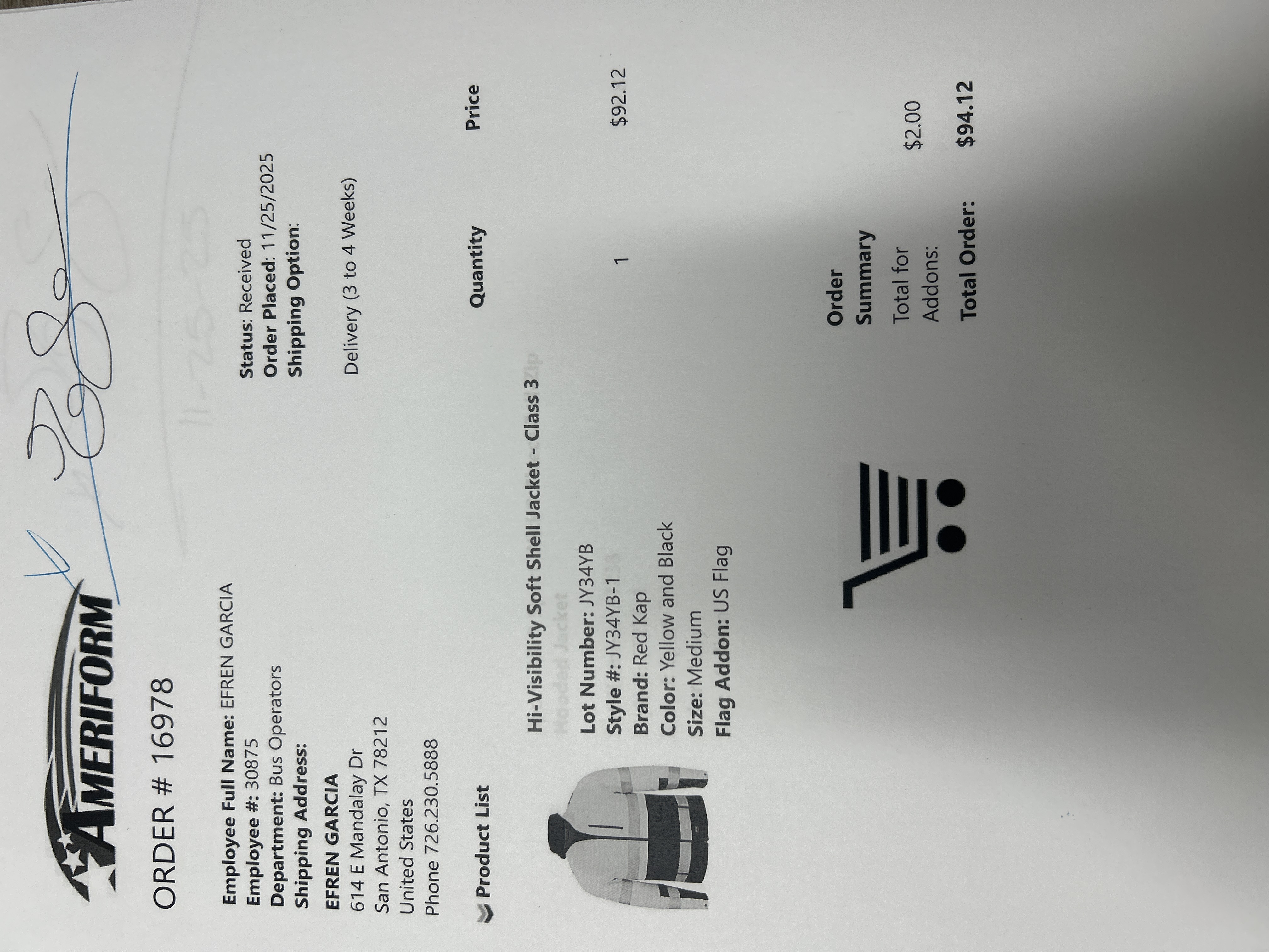 Order # 16978