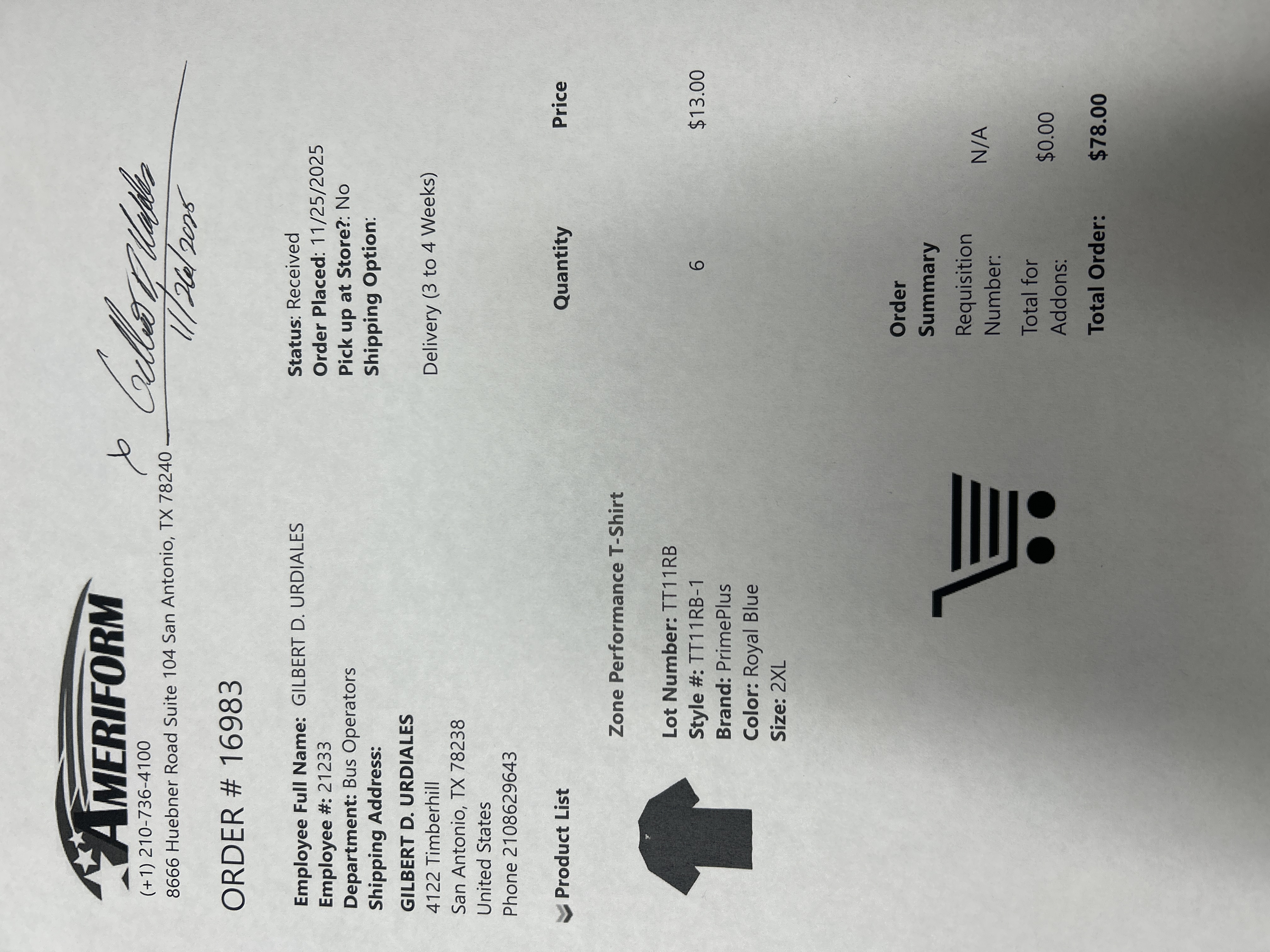 Order # 16983