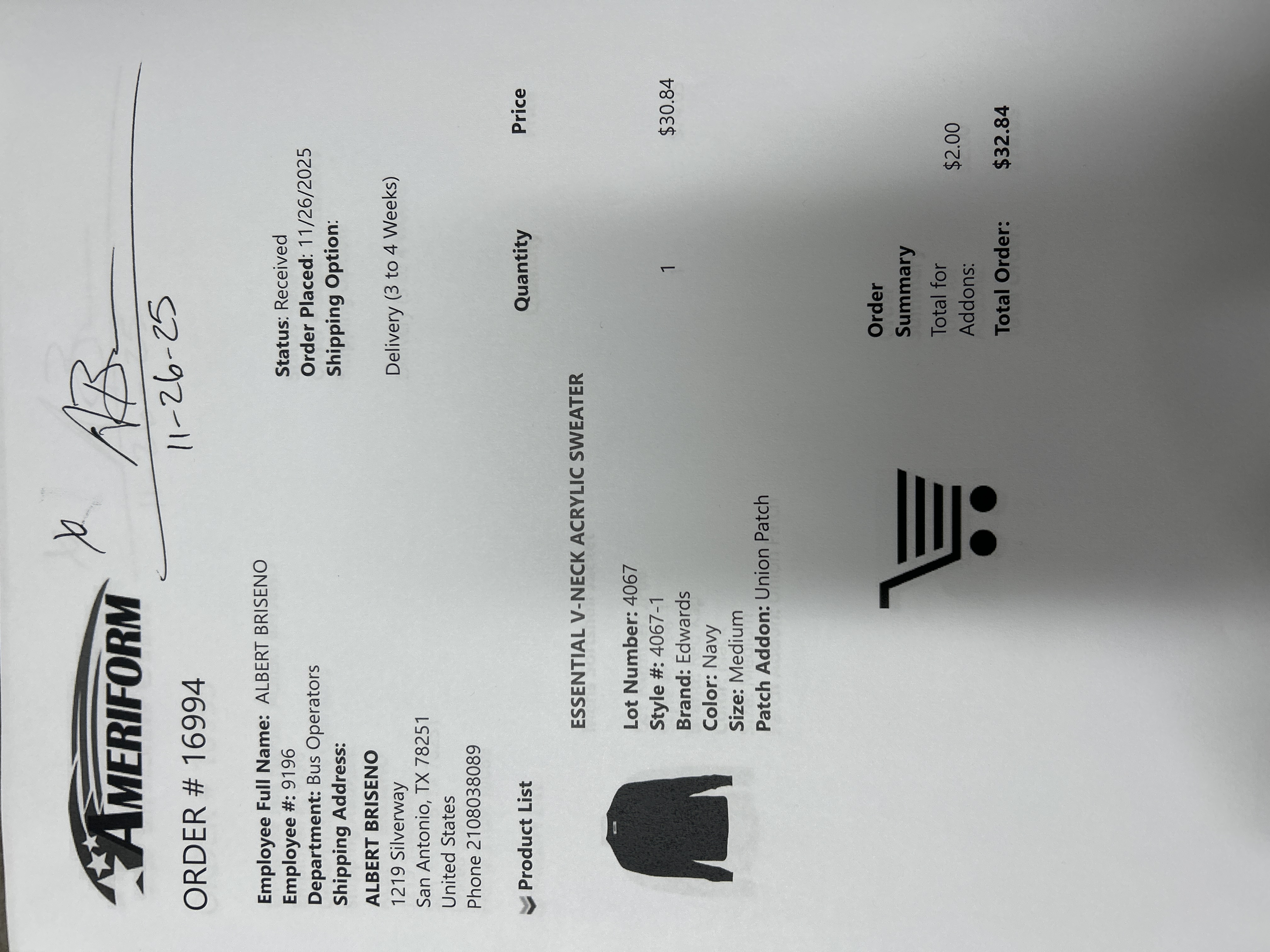 Order # 16994