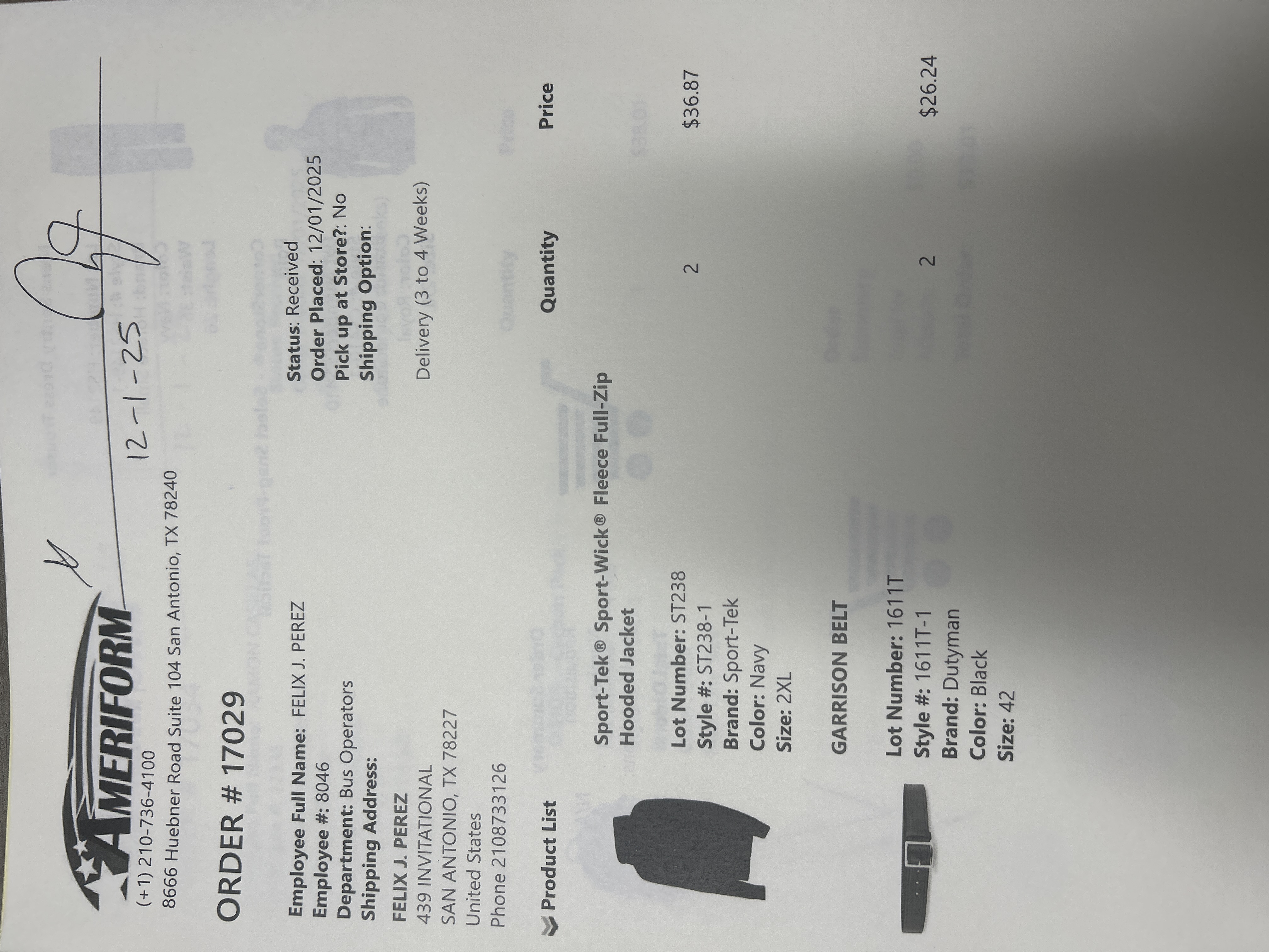 Order # 17029