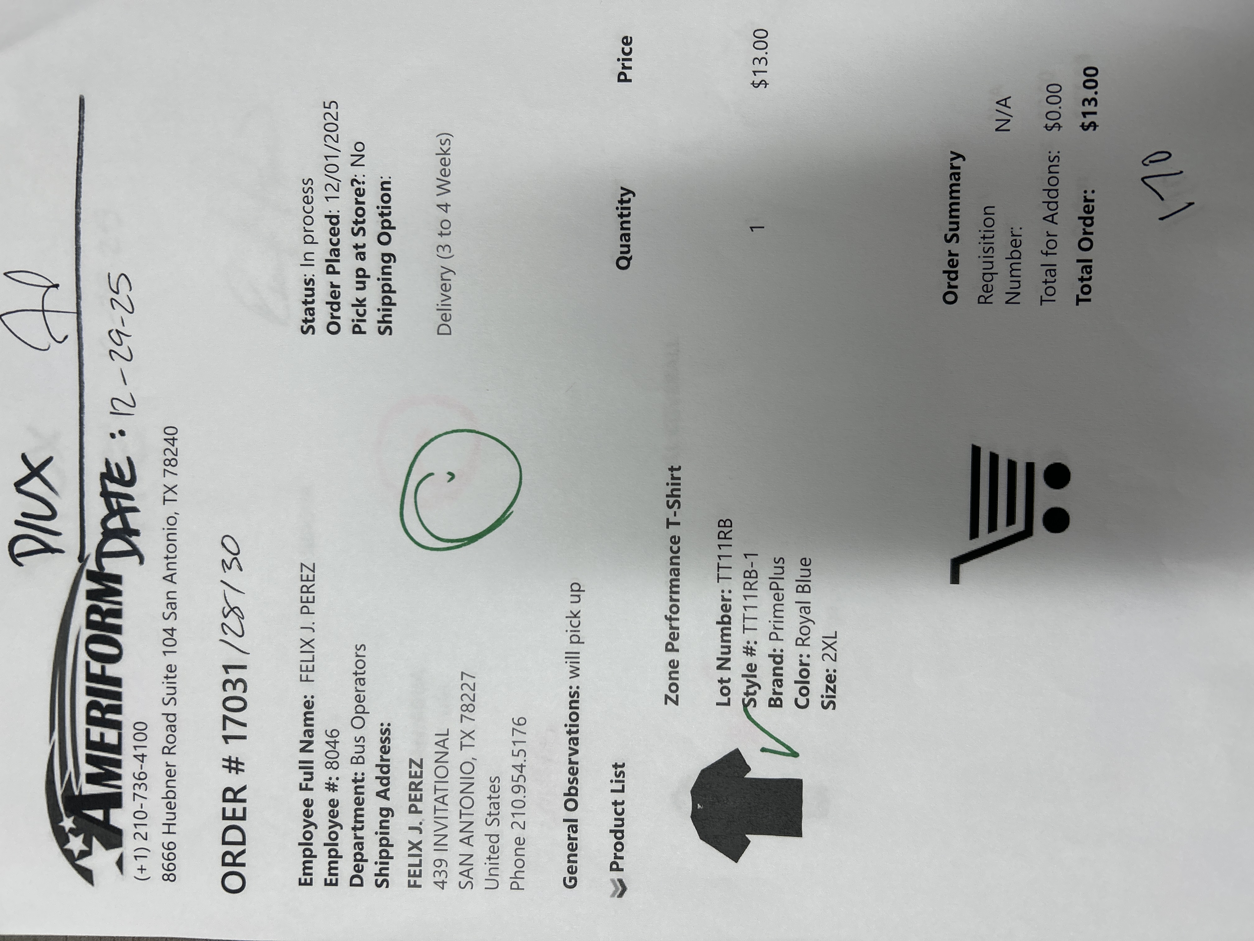 Order # 17031