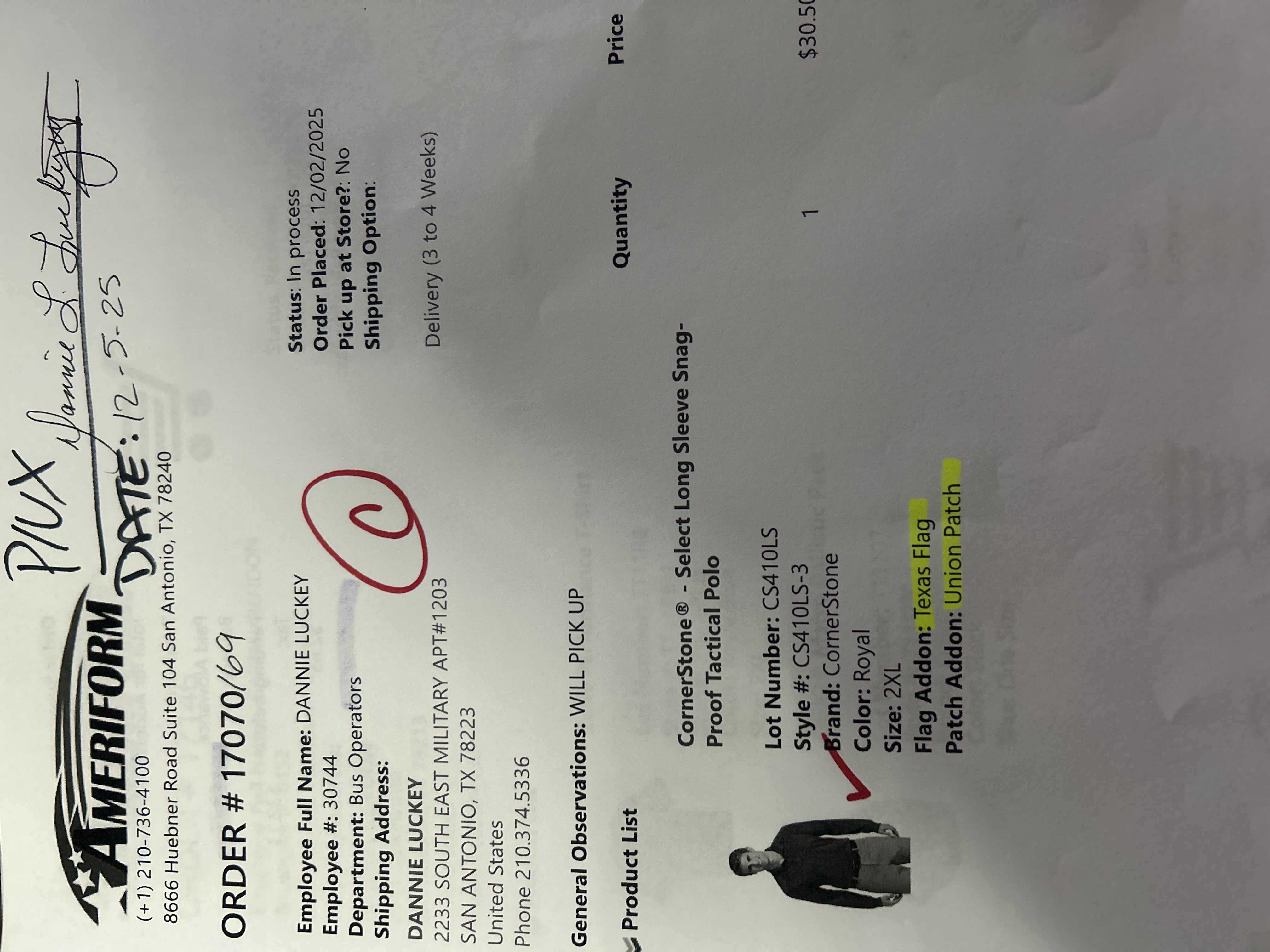 Order # 17070