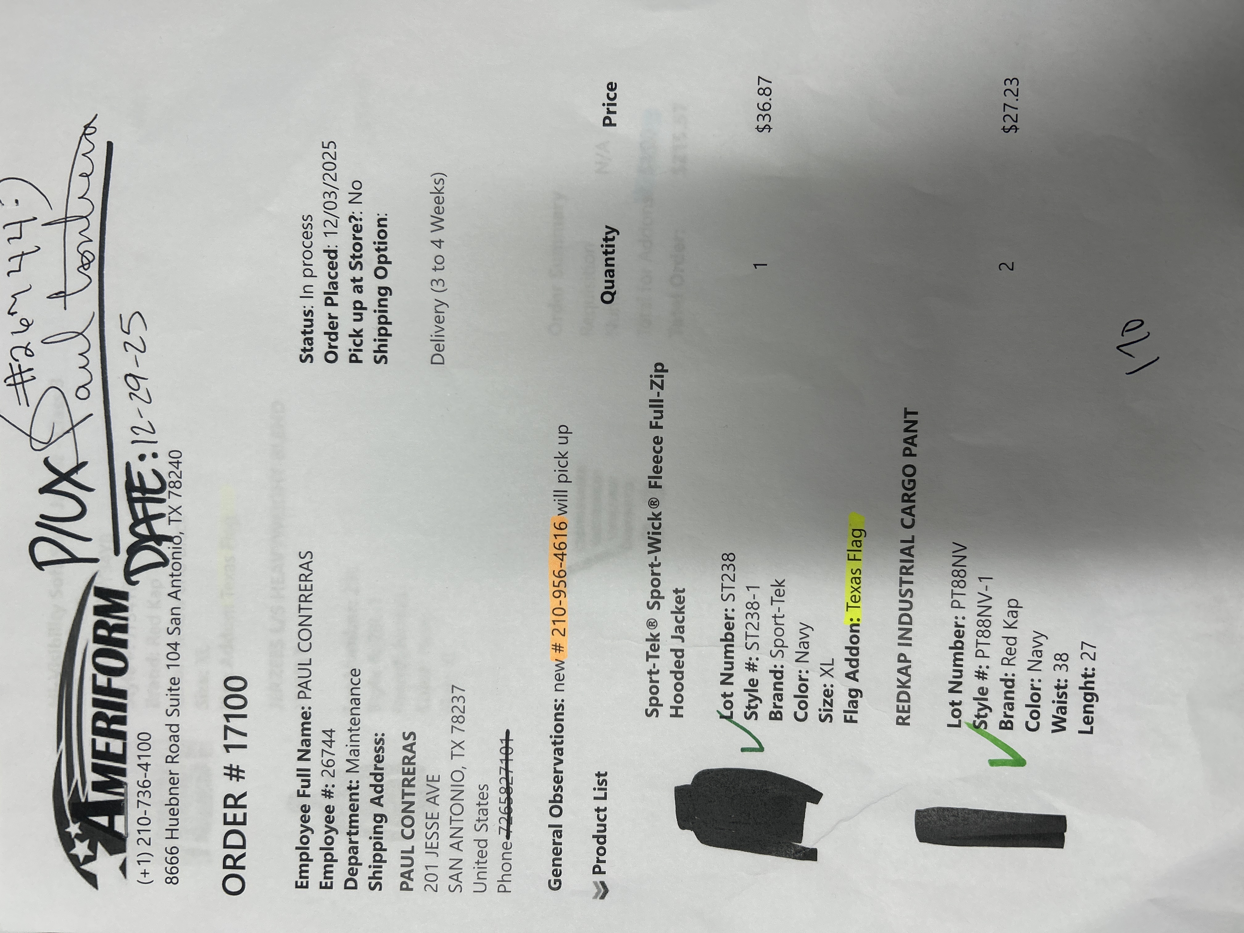 Order # 17100
