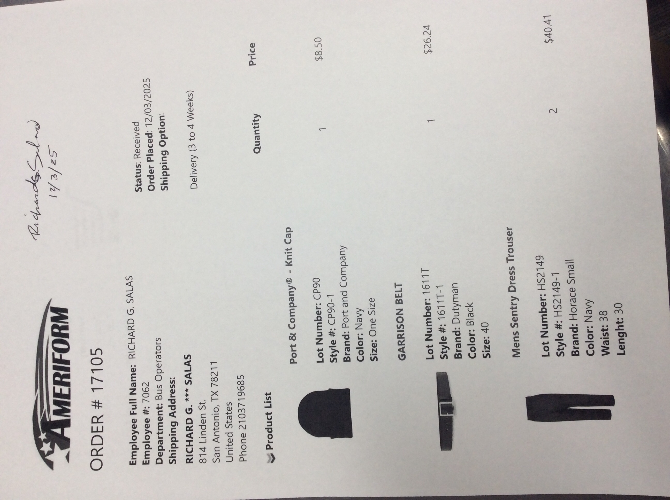 Order # 17105