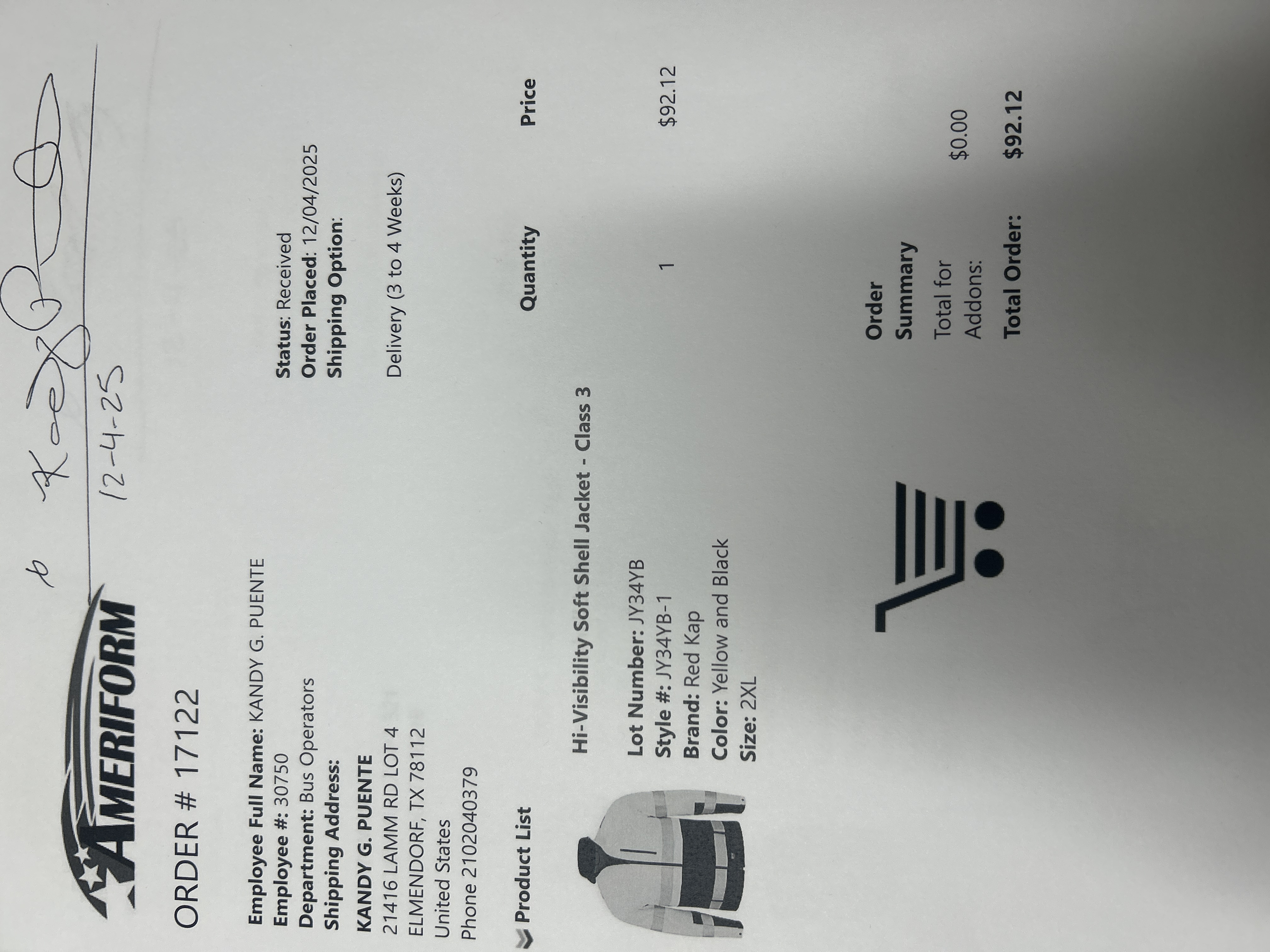 Order # 17122