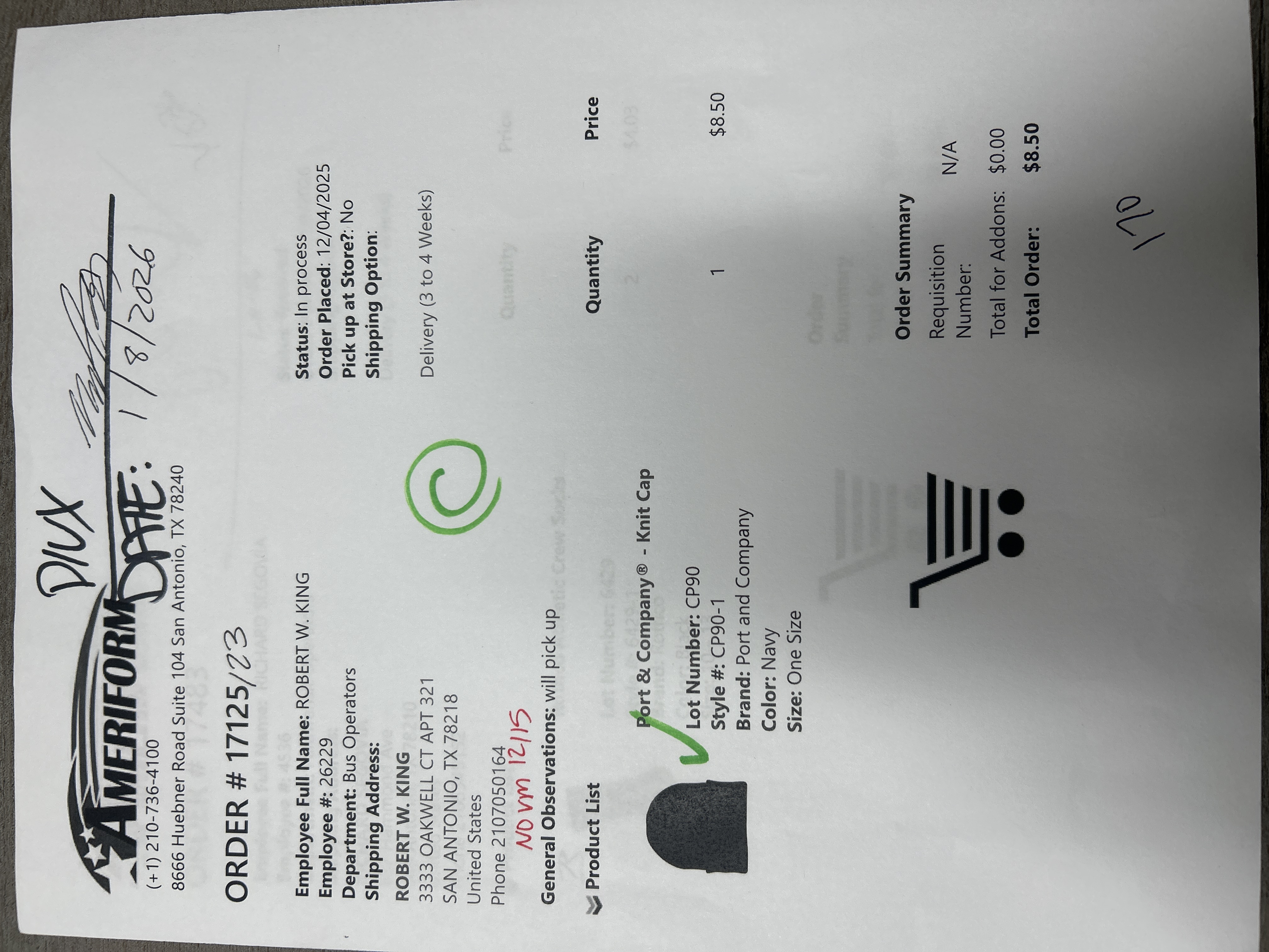 Order # 17125