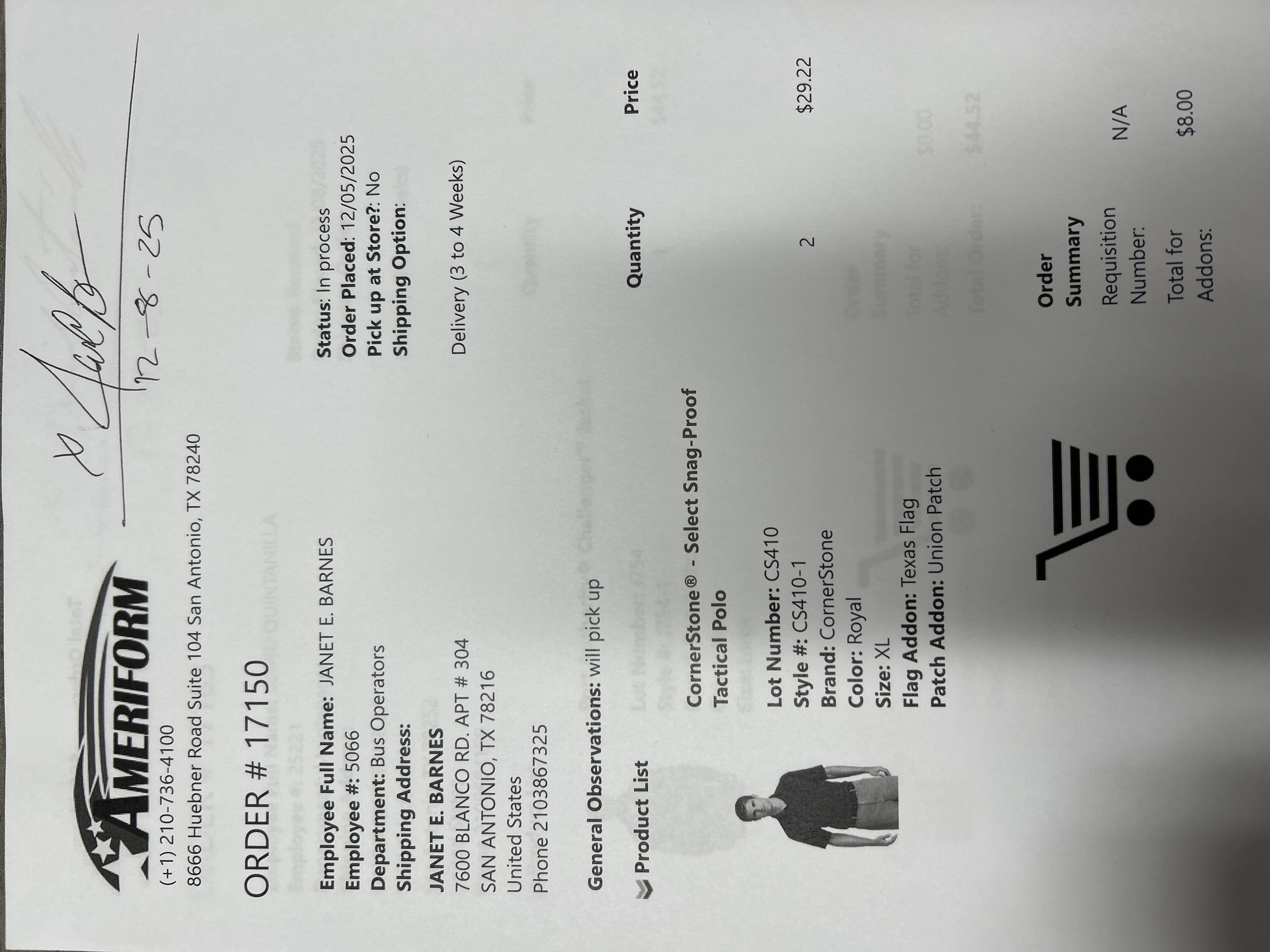 Order # 17150