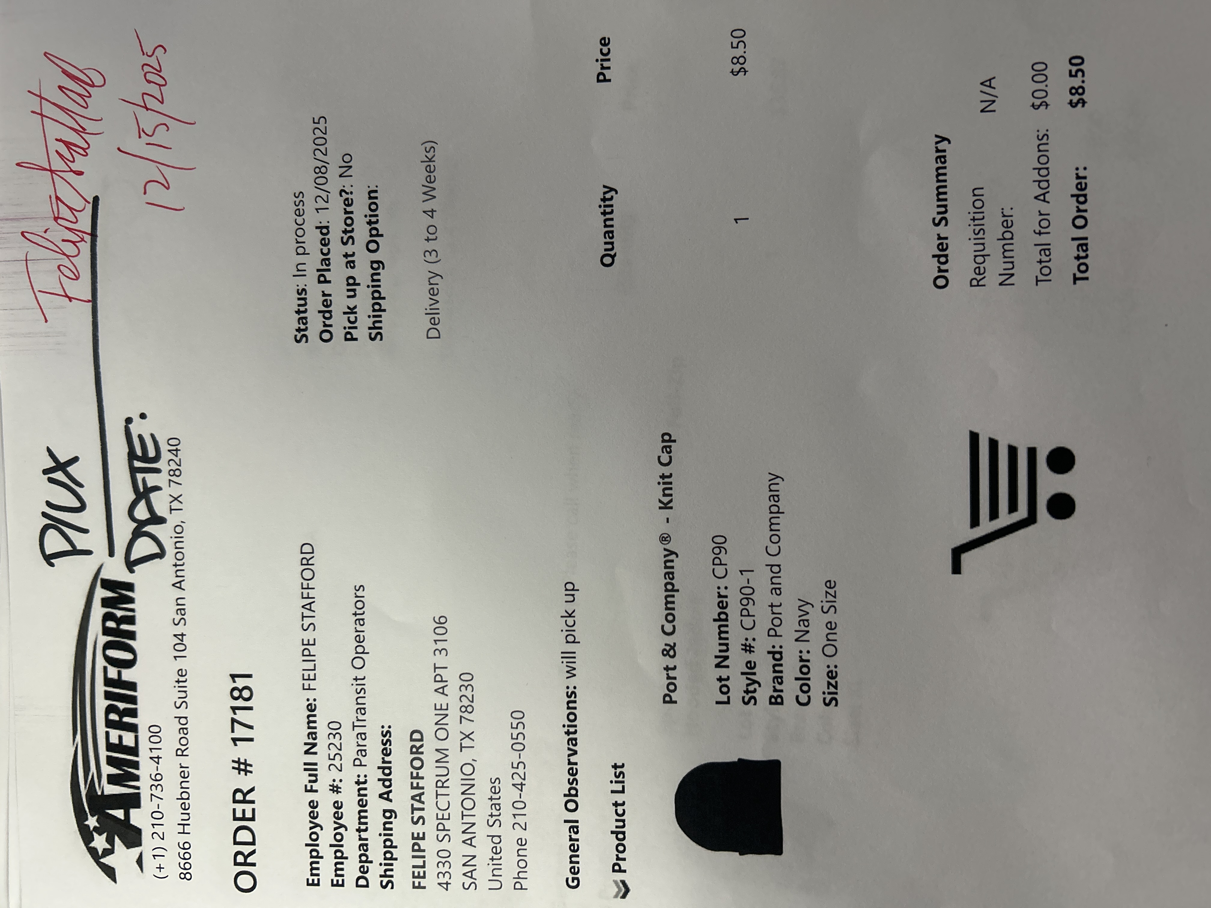 Order # 17181