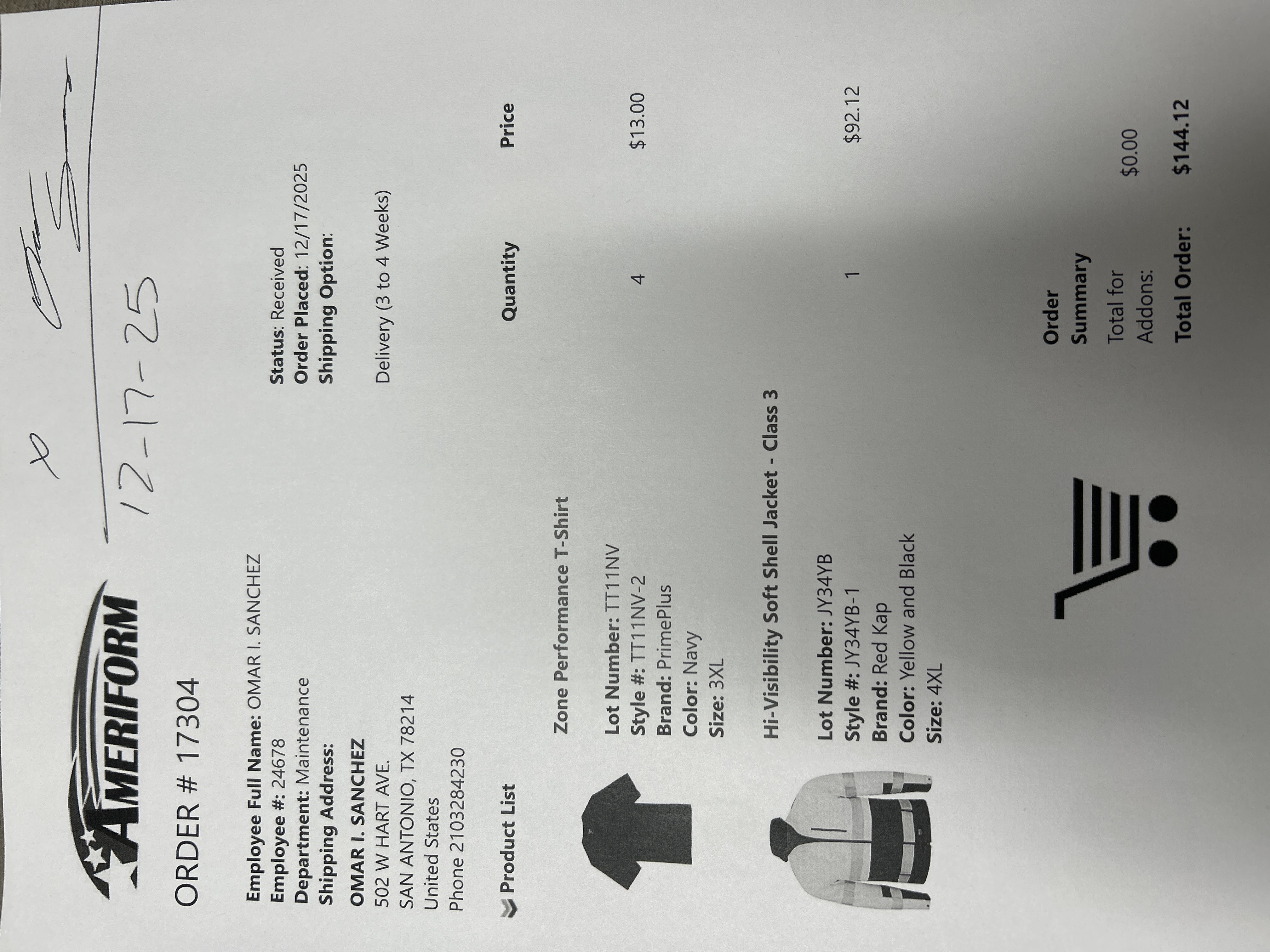 Order # 17304