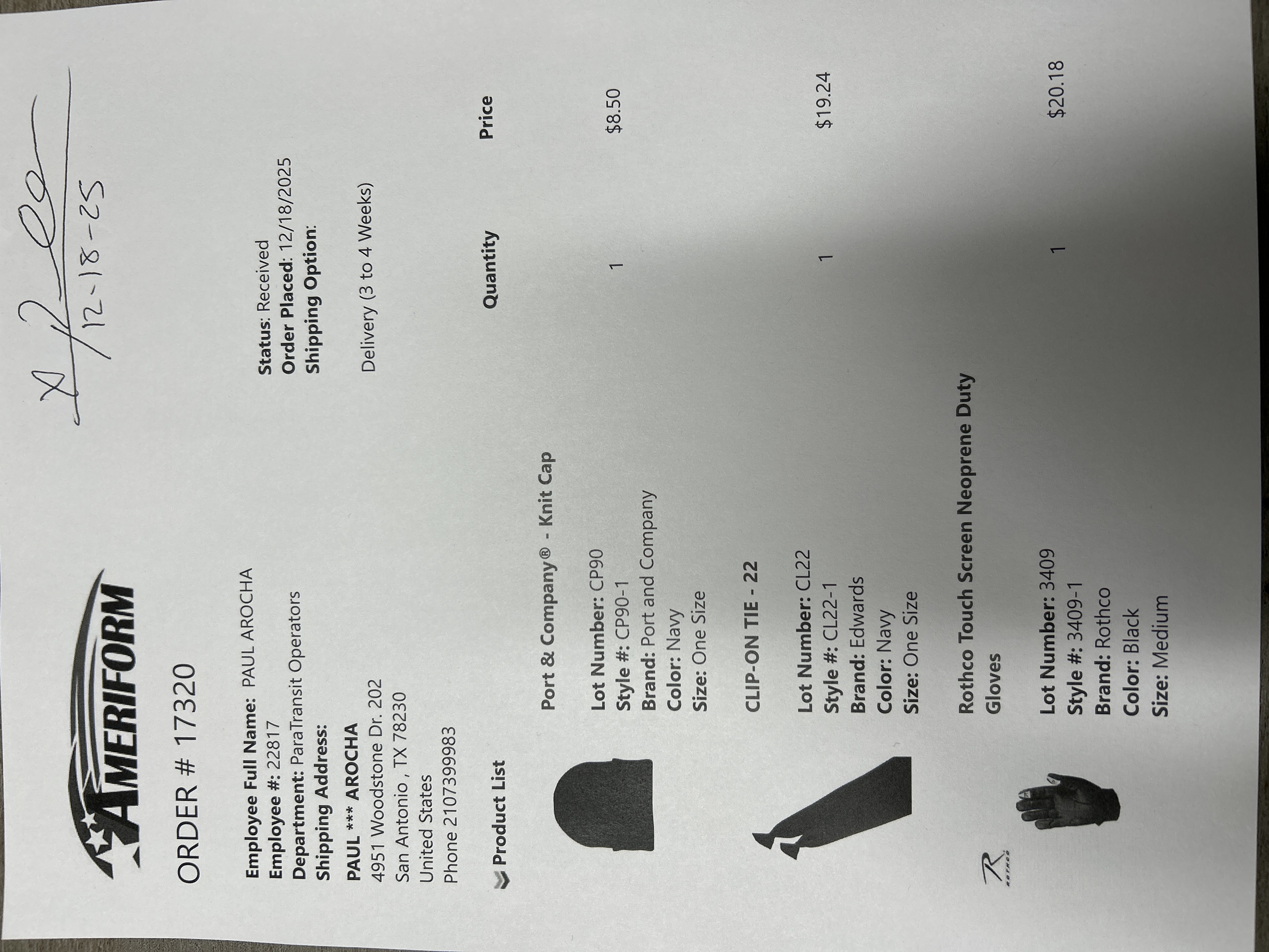 Order # 17320
