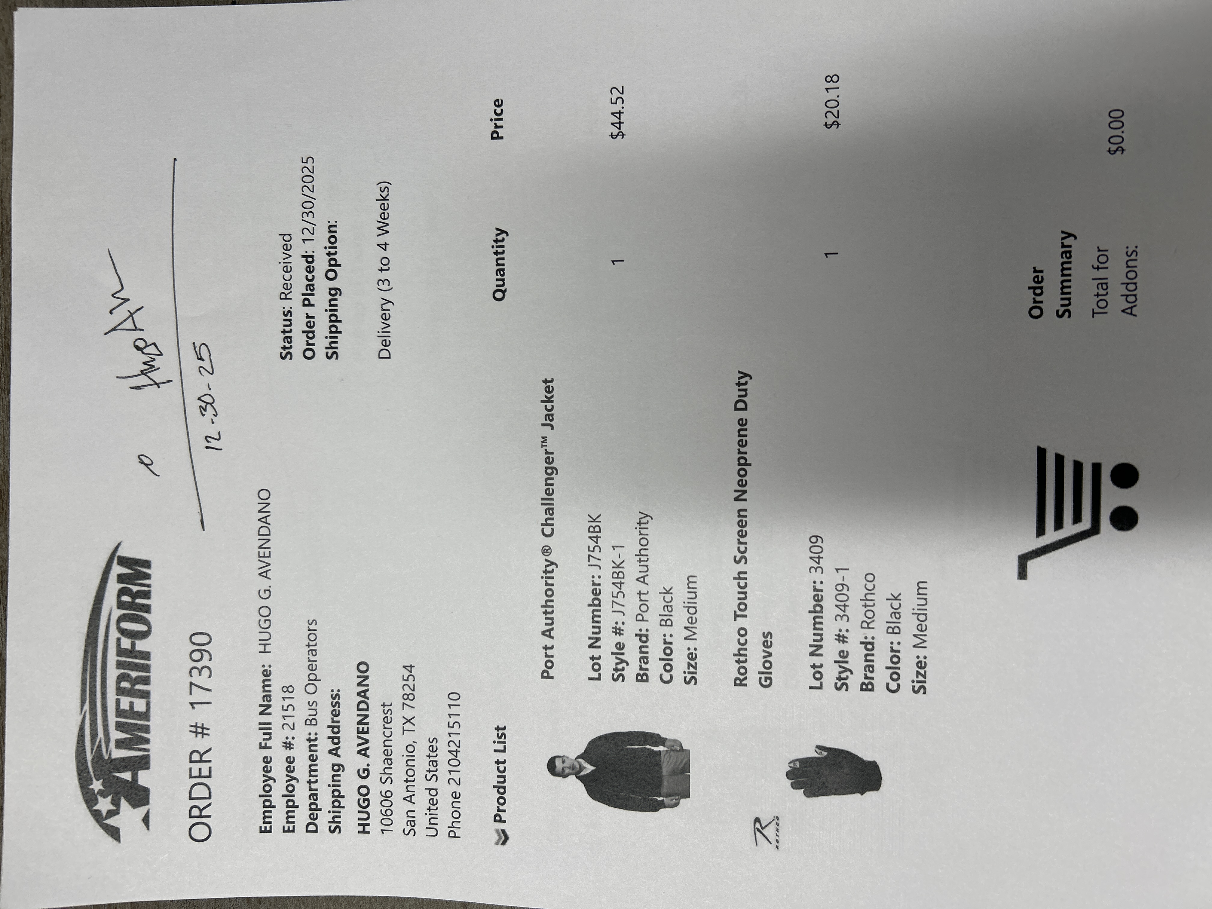 Order # 17390