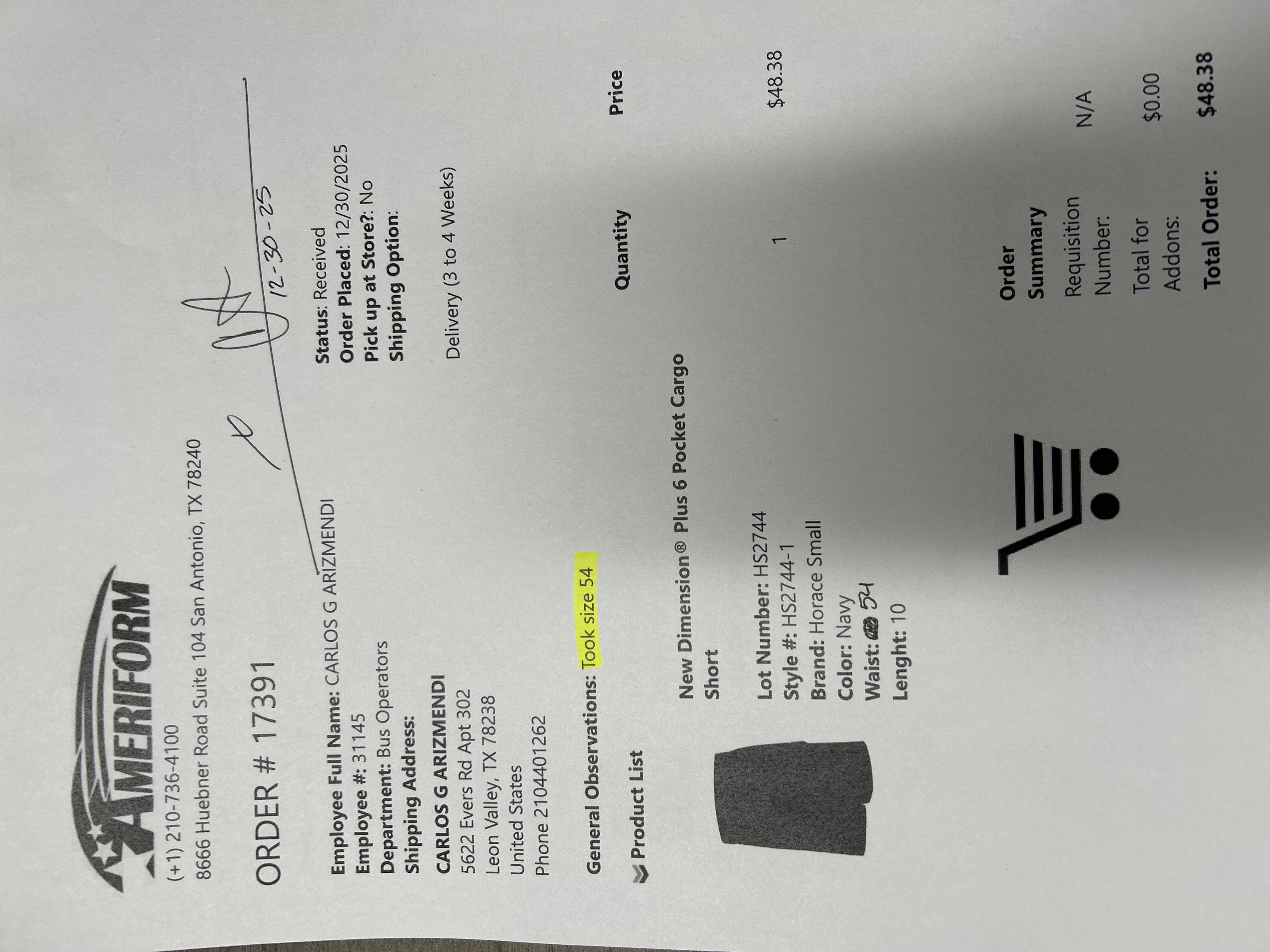 Order # 17391